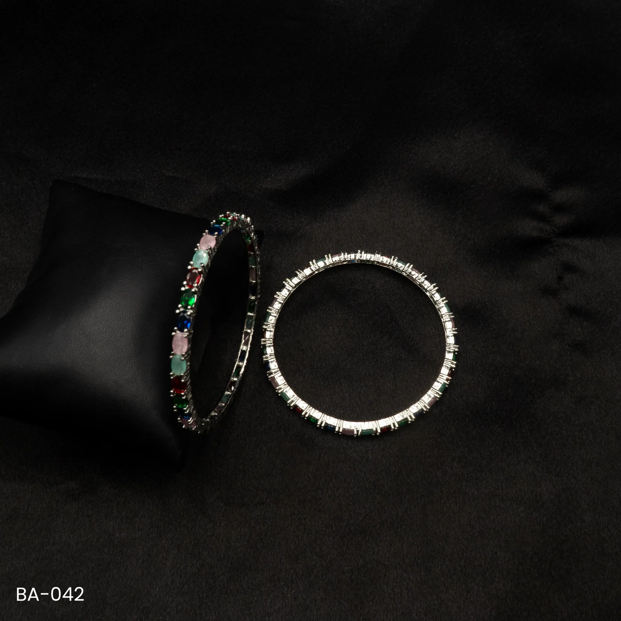 BA-042 – White Gold Plated Multicolor Gems Studded 2 Pcs Set Bangles