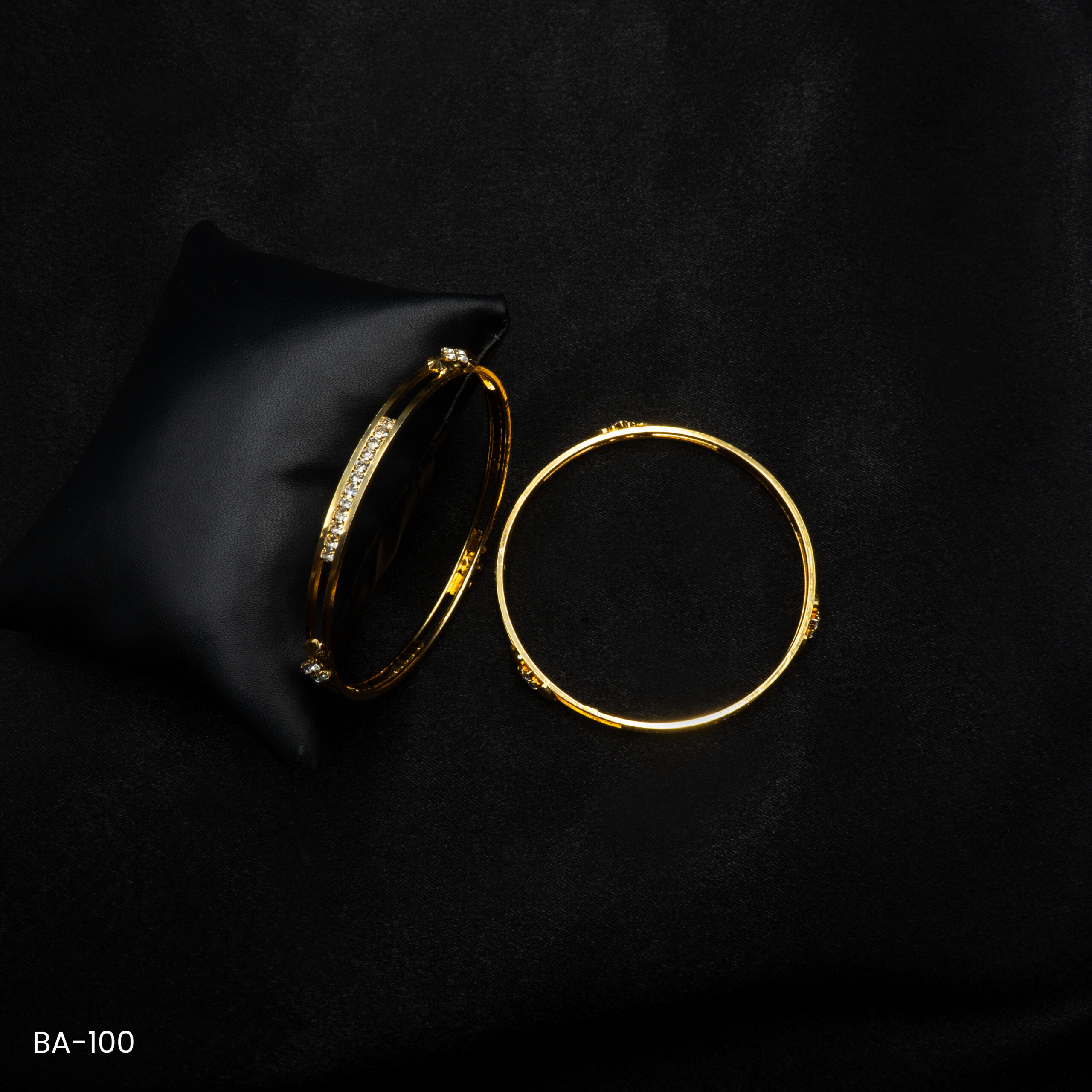 BA-100 – Sleek & Minimalist Design Gold Plated American Diamond 2 Pcs Set Bangles