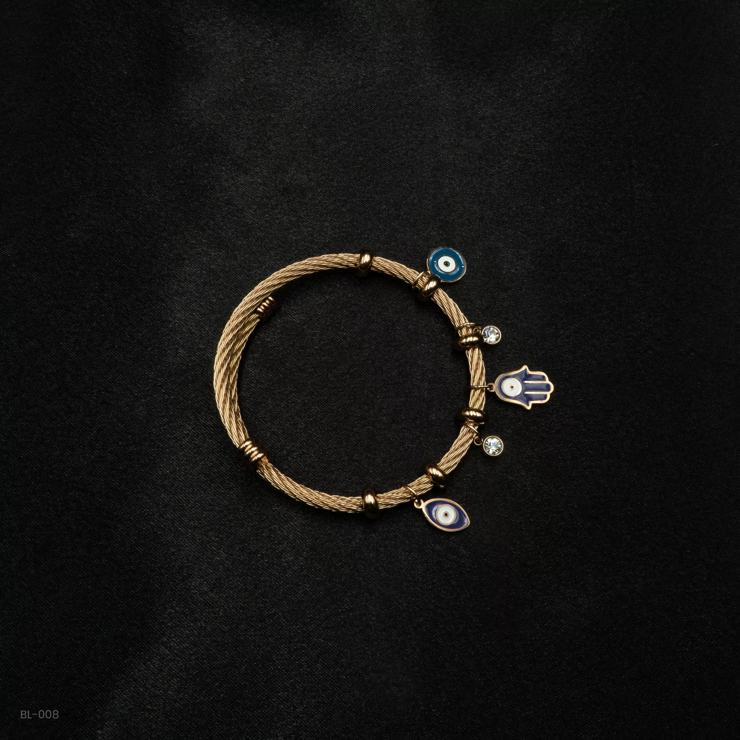 BL-008 – Stylish Evil Eye Charms Gold Plated Rope Bracelet