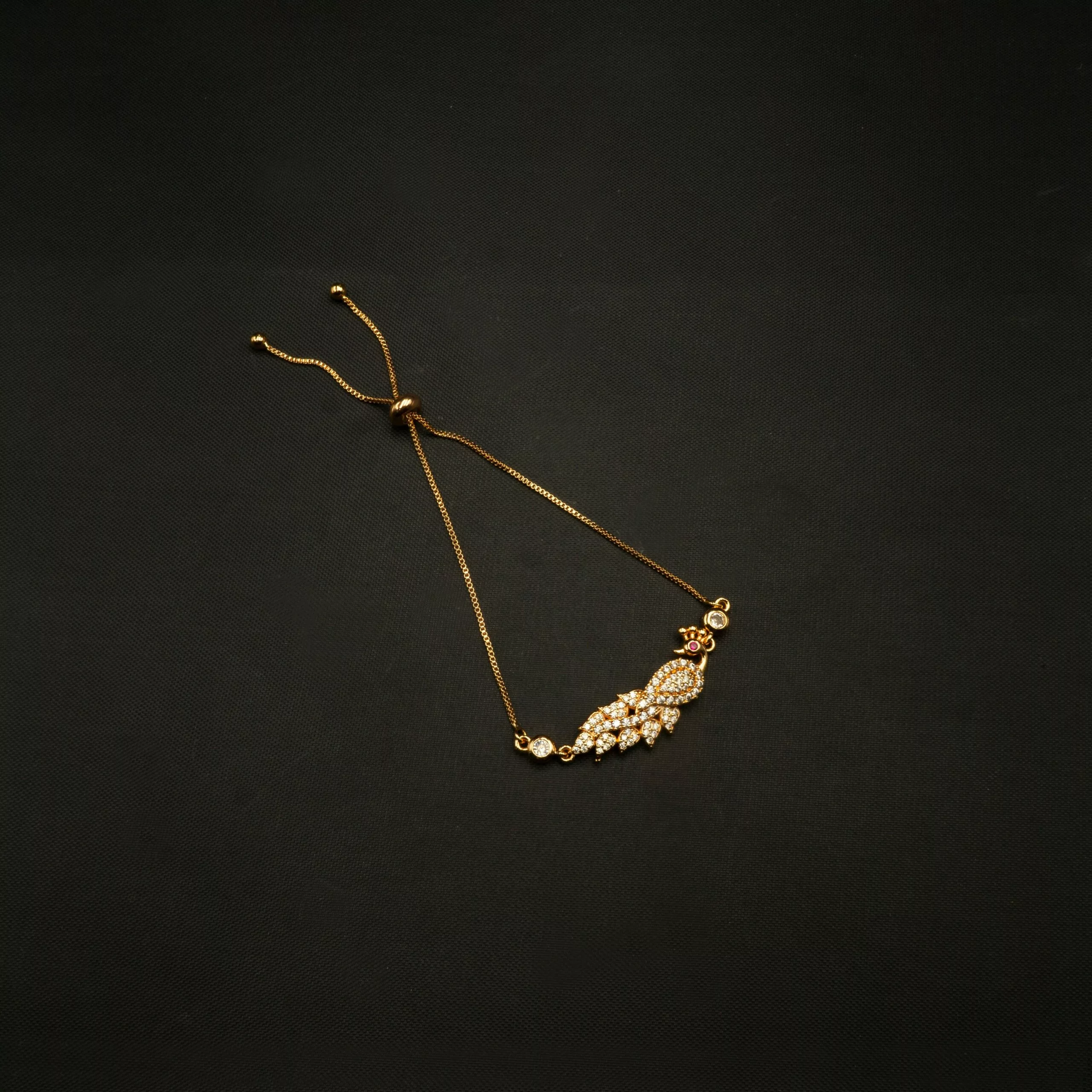 Tags: Adjustable, American Diamond, Bracelet, Brass, Cubic Zirconia, Gold Plated, Golden, Peacock, Slider