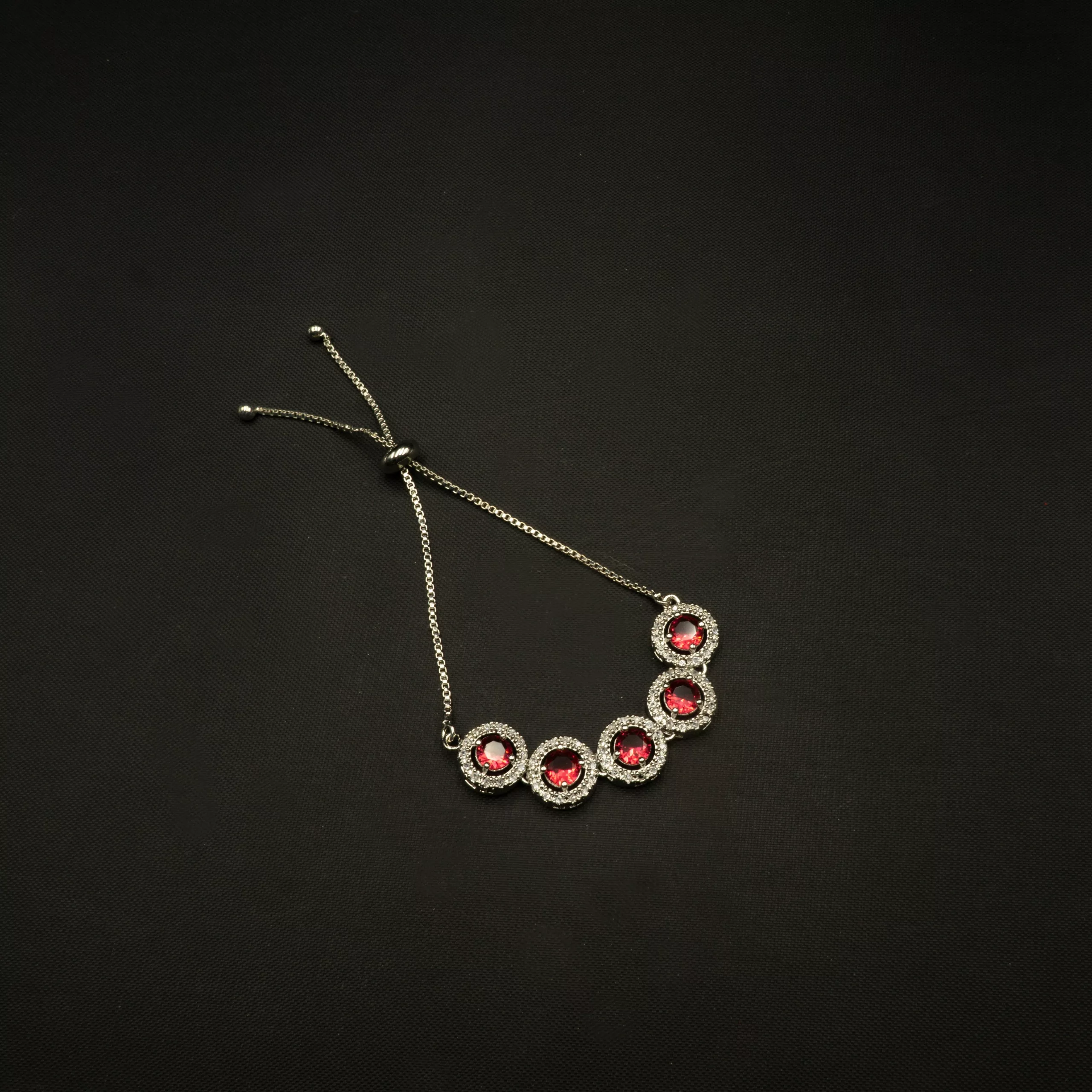 BL-2304012 – White Gold Plated American Diamond & Ruby Slider Bracelet
