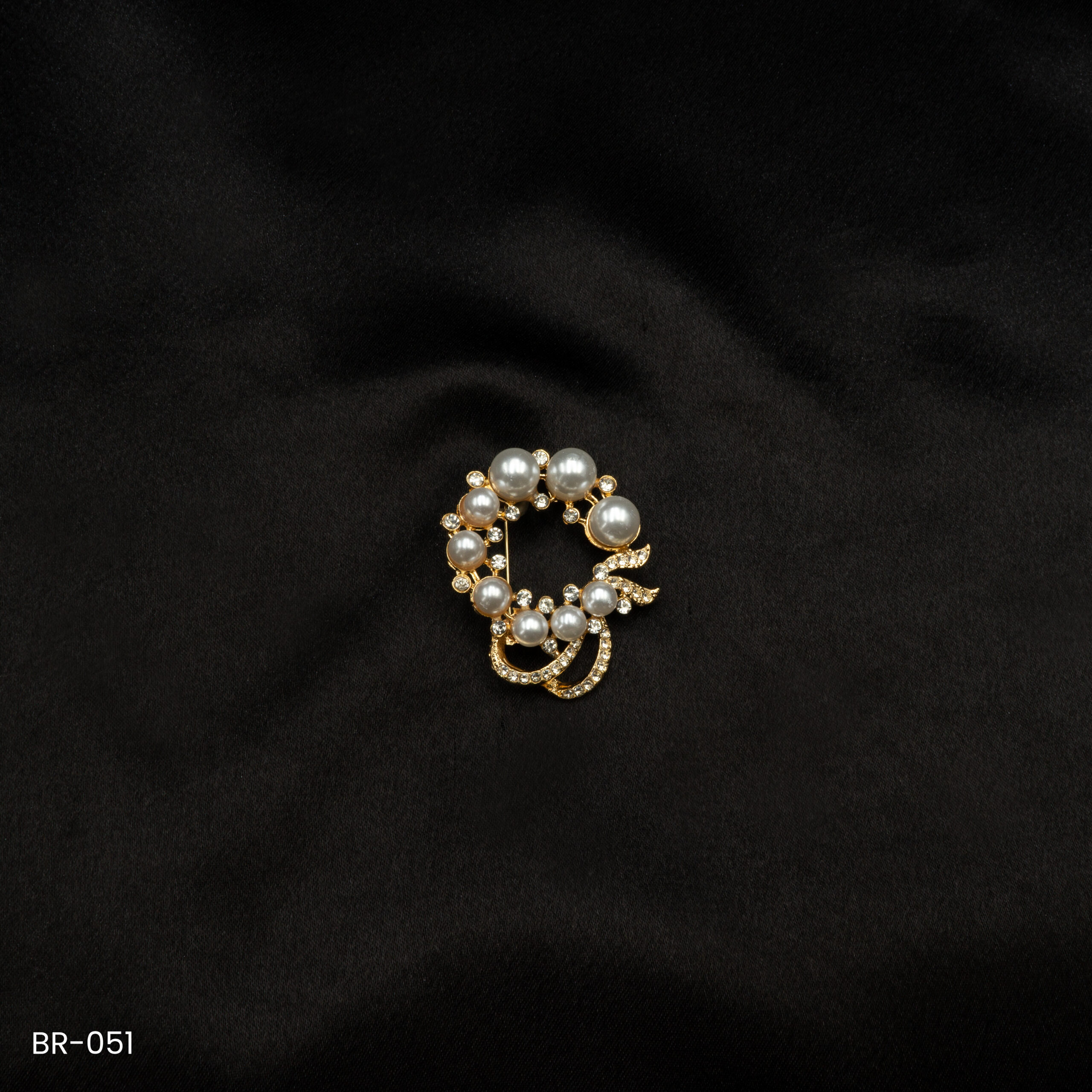 BR-051 – Pearl Radiance Wreath Brooch – Timeless Glamour in Gold Plating