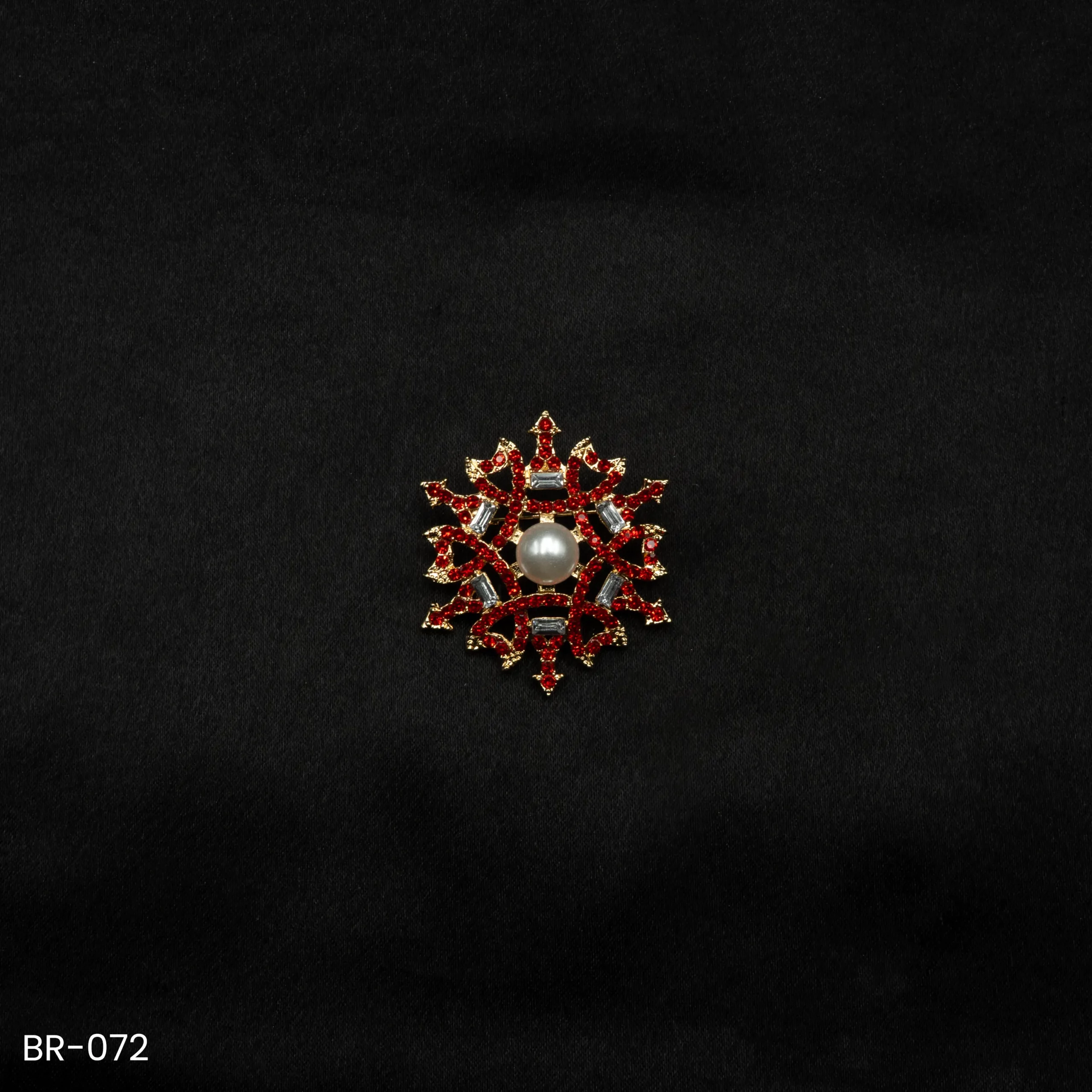 BR-072 – Starburst Designer Brooch – Red Crystal Saree Pin