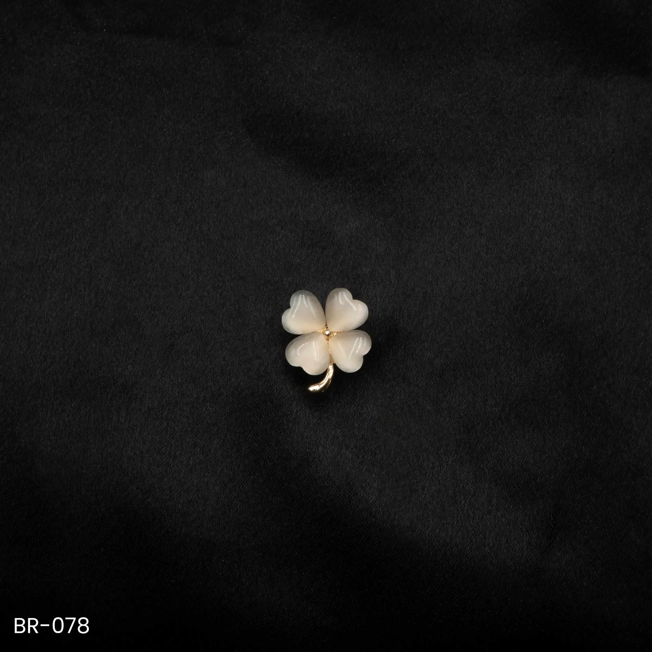 BR-078 – Four-Leaf White Clover Brooch Gold-Toned Saree Pin For Women