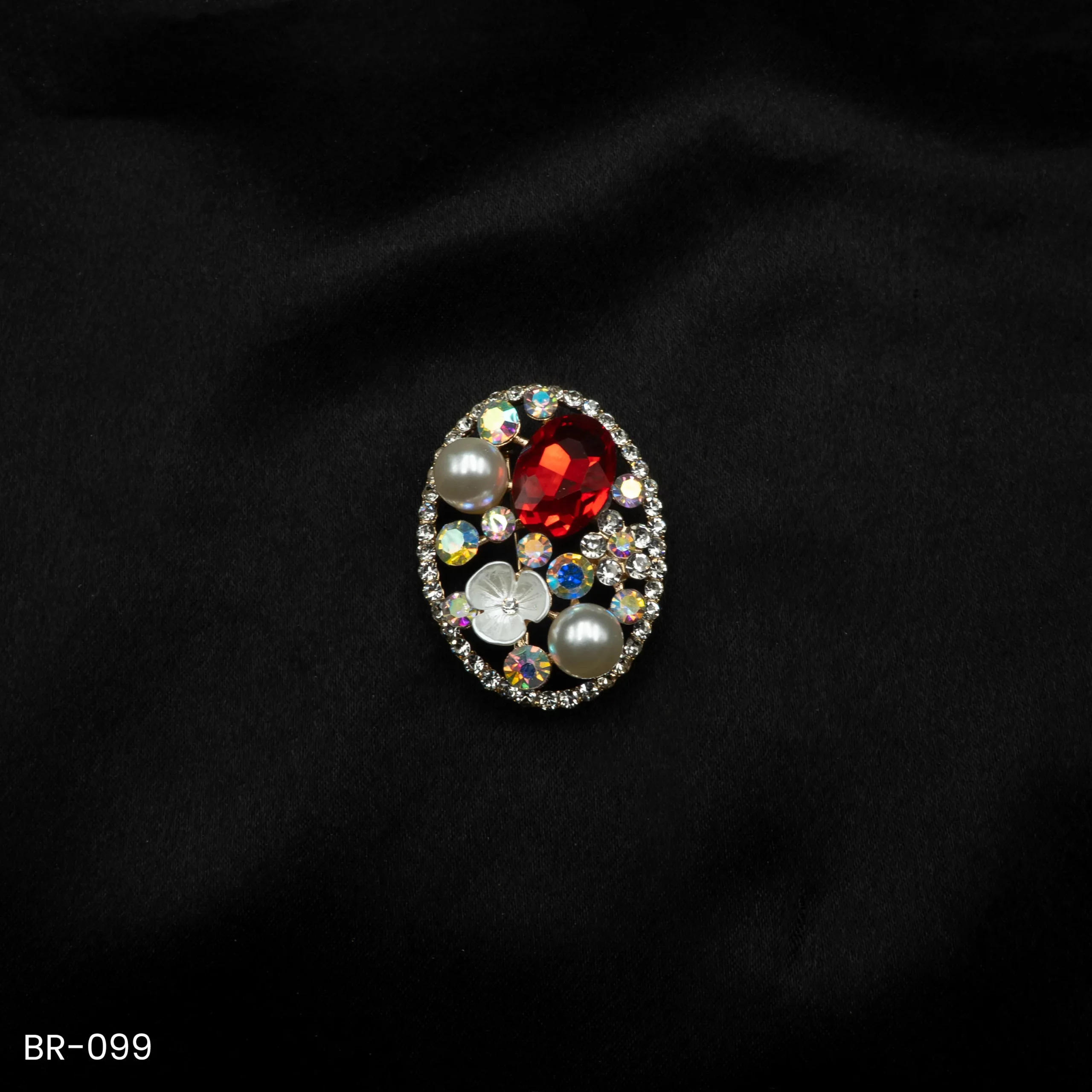 Be the first to review “BR-099 – Saree Glam Floral Elegance Red Crystal Vintage Oval Fashion Brooch with Pearls” Cancel reply