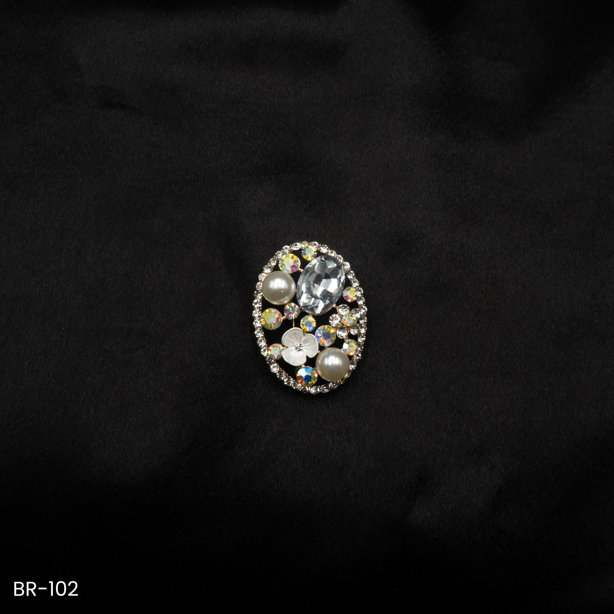 Be the first to review “BR-102 – Saree Glam Floral Elegance White Crystal Vintage Oval Fashion Brooch with Pearls” Cancel reply