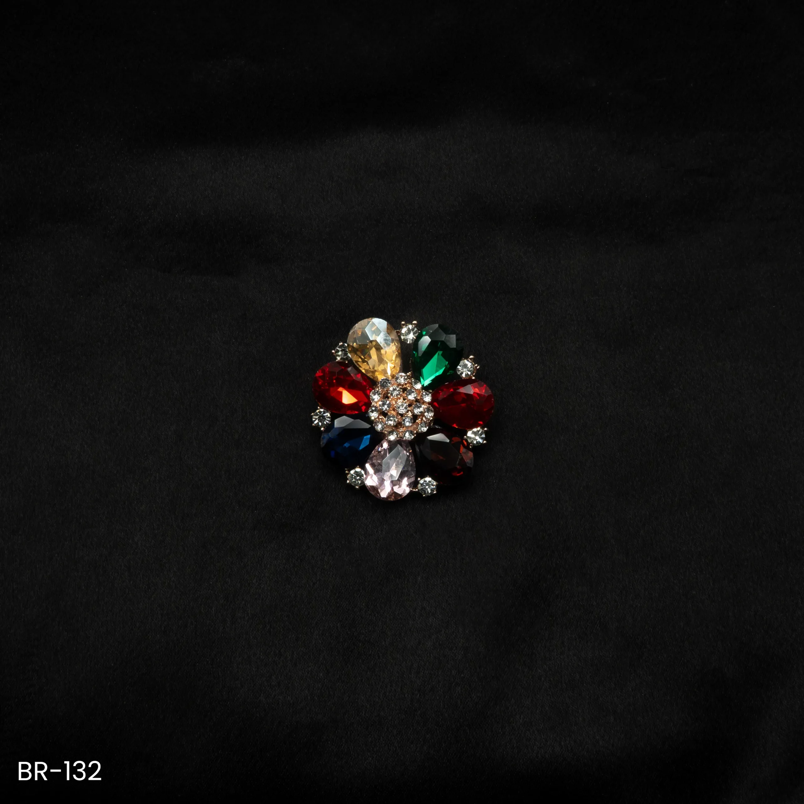 BR-132 – Statement Floral Sparkle Dazzling Multicolor Flower Brooch Sarees & Dresses