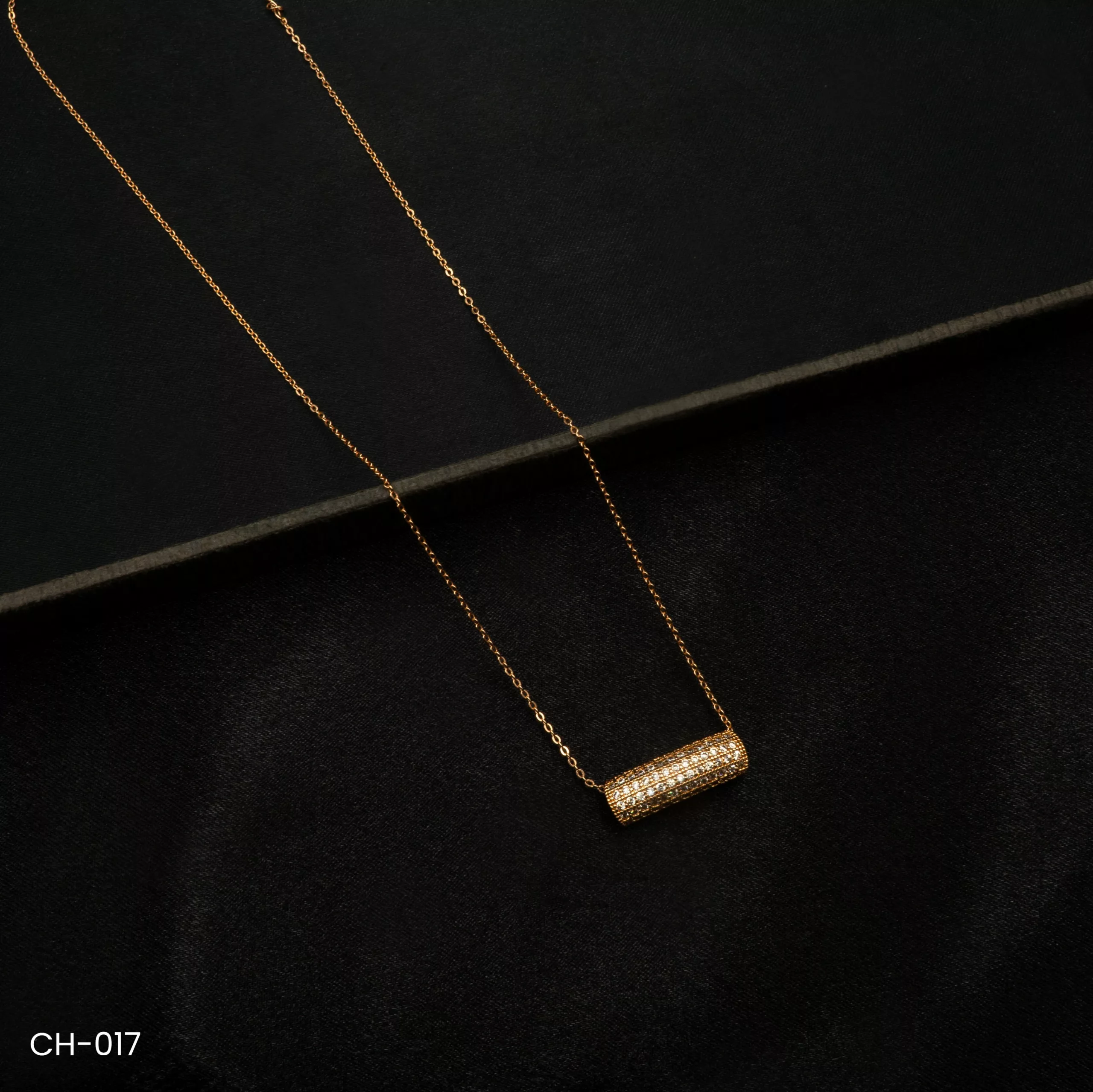 CH-017 – Rose Gold Plated American Diamond Locket Chain Necklace