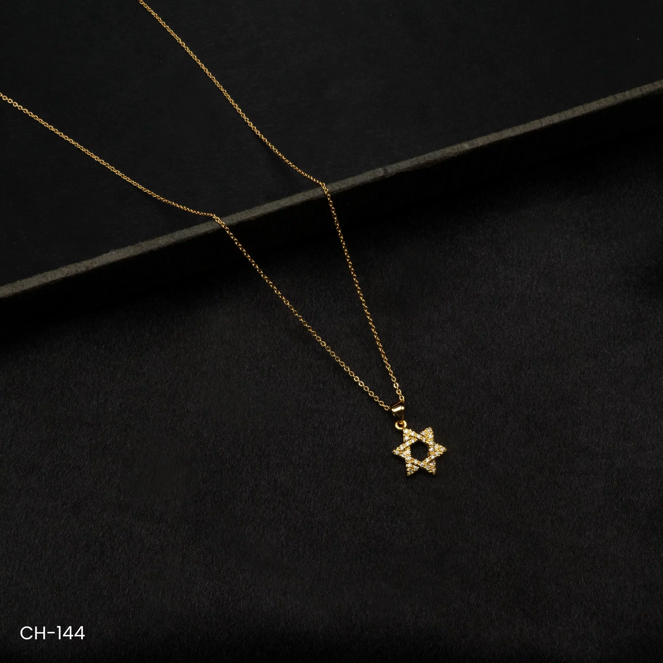 CH-144 – Celestial Star Dazzling American Diamond Gold Plated Star Pendant Necklace