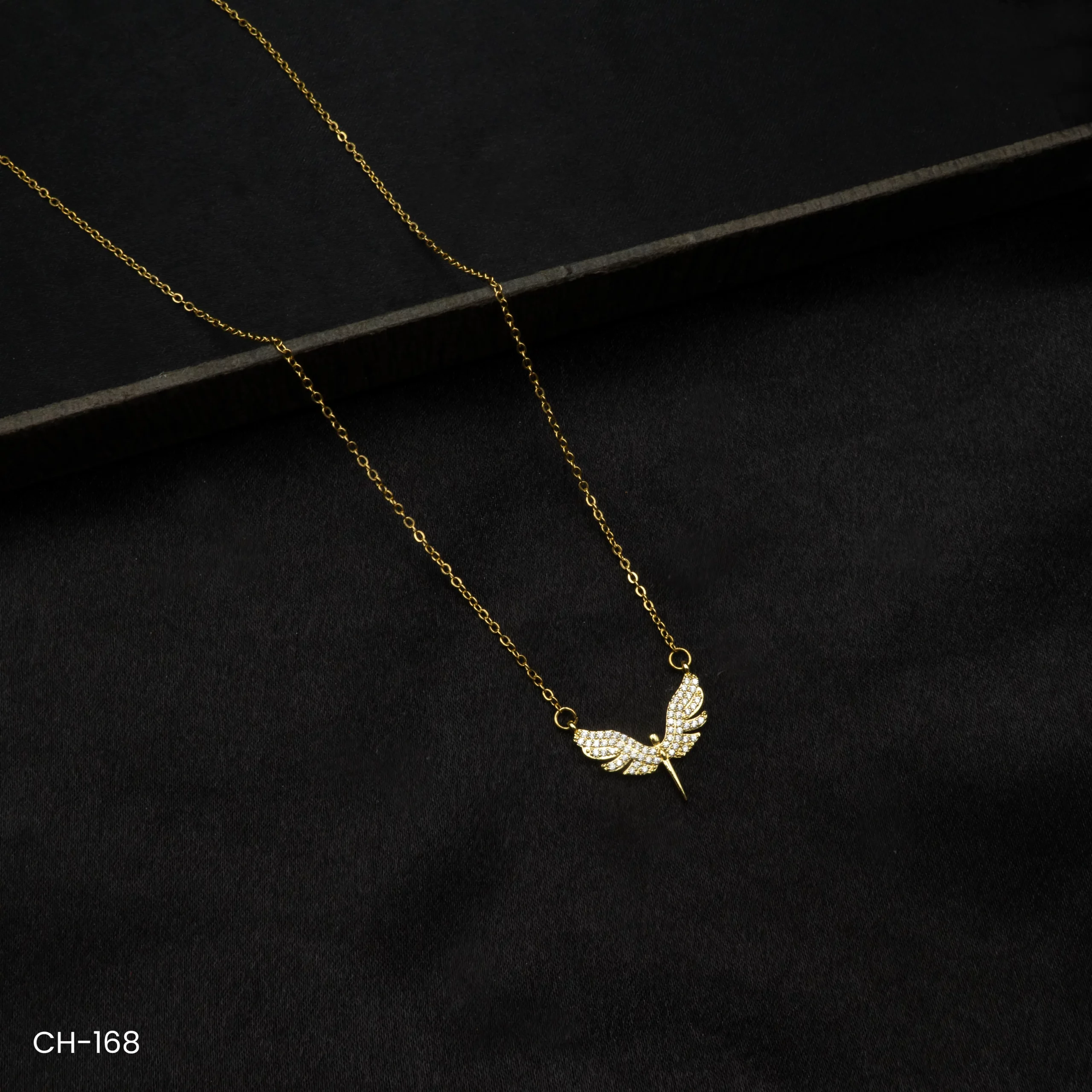 CH-168 – Dazzling Gold Plated American Diamond Necklace Featuring an Artistic Wing Design