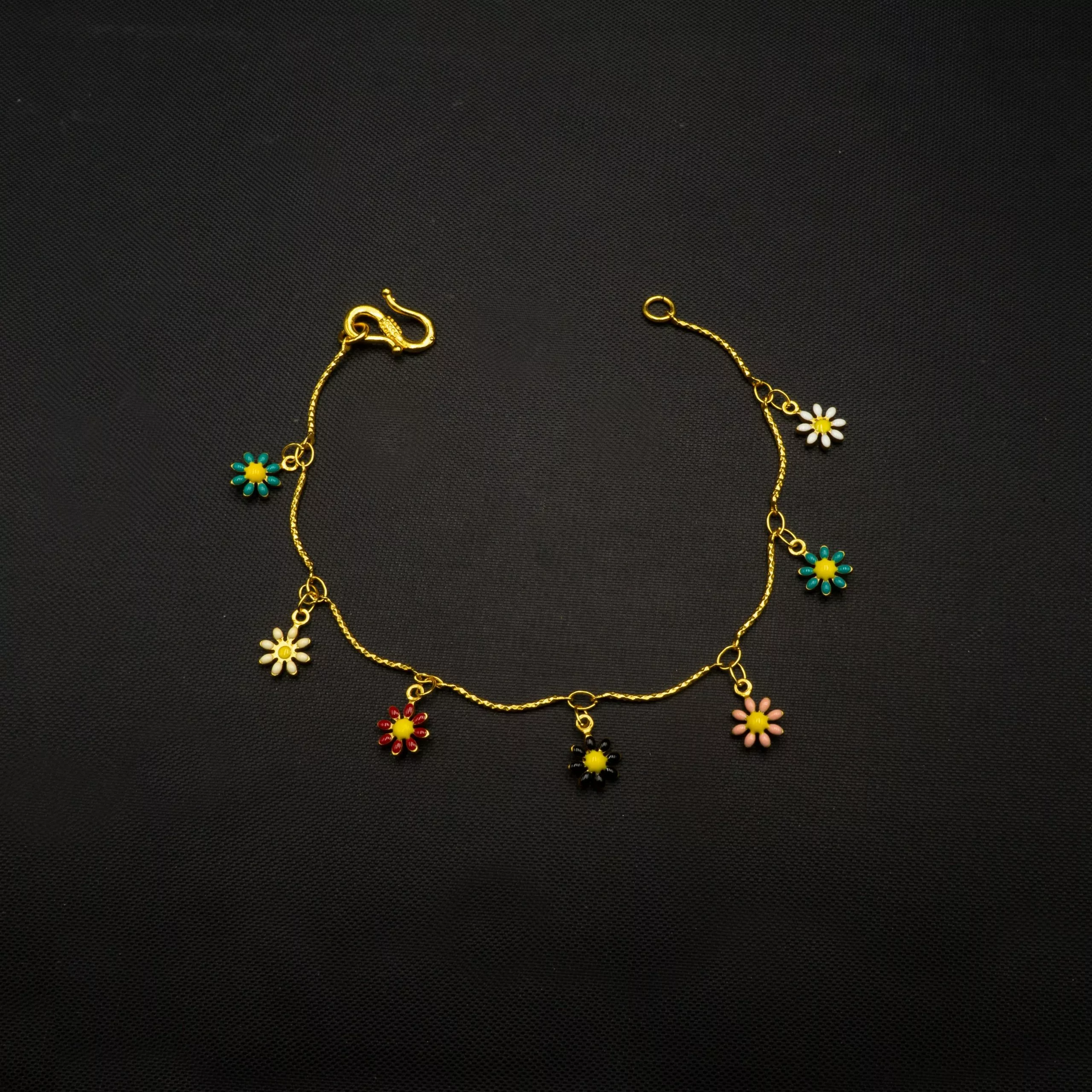 Tags: Bracelet, Brass, Chain, Flower, Gold Plated, Minimal, Multicolor