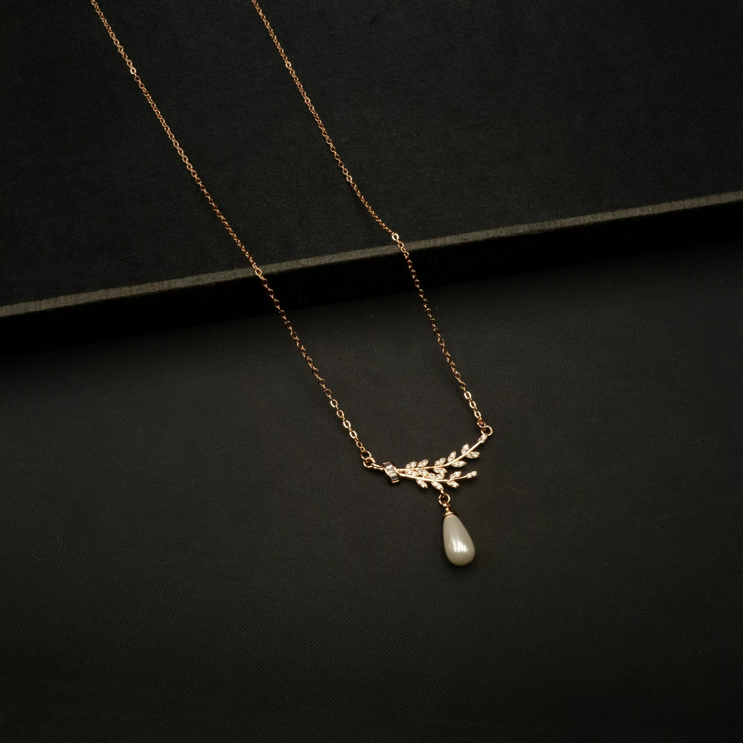 CH-2210001 – American Diamond Rose Gold Contemporary Pearl Drop Necklace
