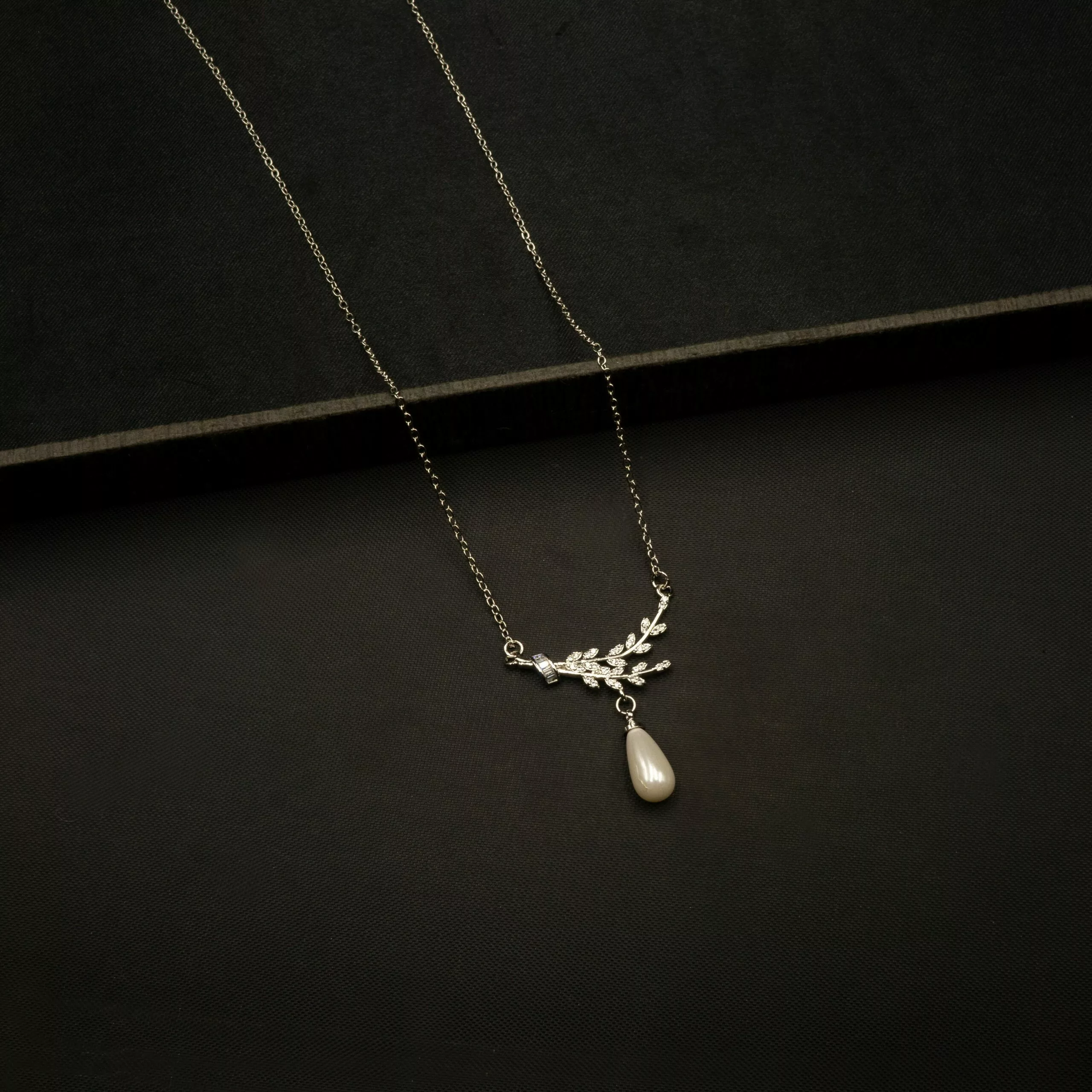 CH-2210002 – American Diamond White Gold Contemporary Pearl Drop Necklace