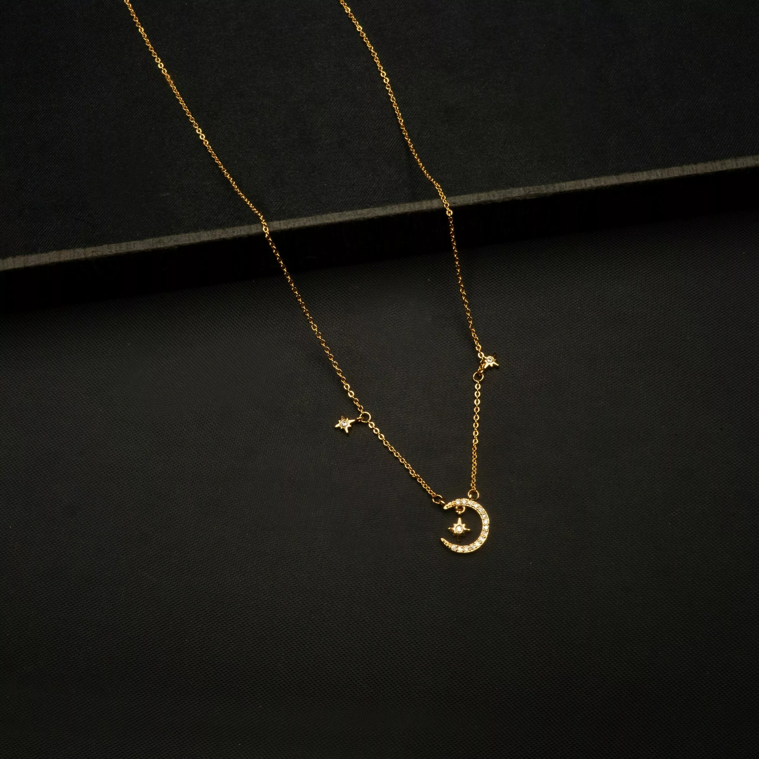 CH-2210009 – Gold Plated American Diamond Moon & Star Necklace