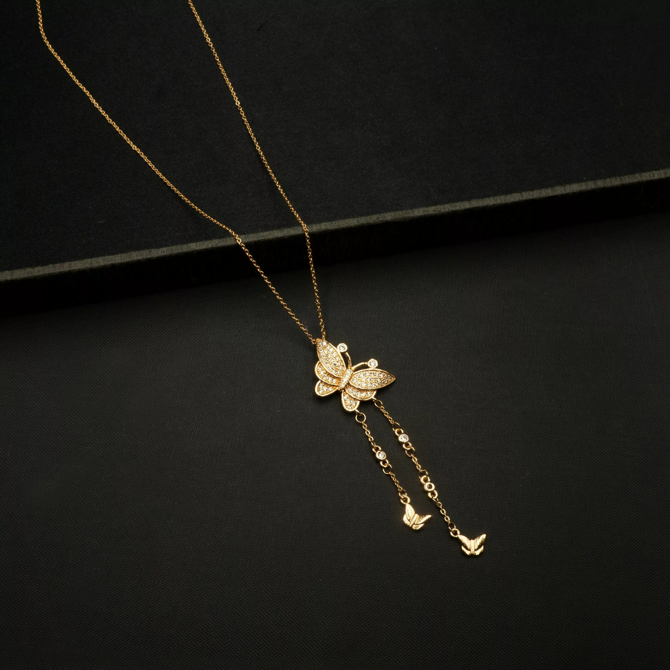 CH-2212016 – Gold Plated American Diamond Butterfly Necklace