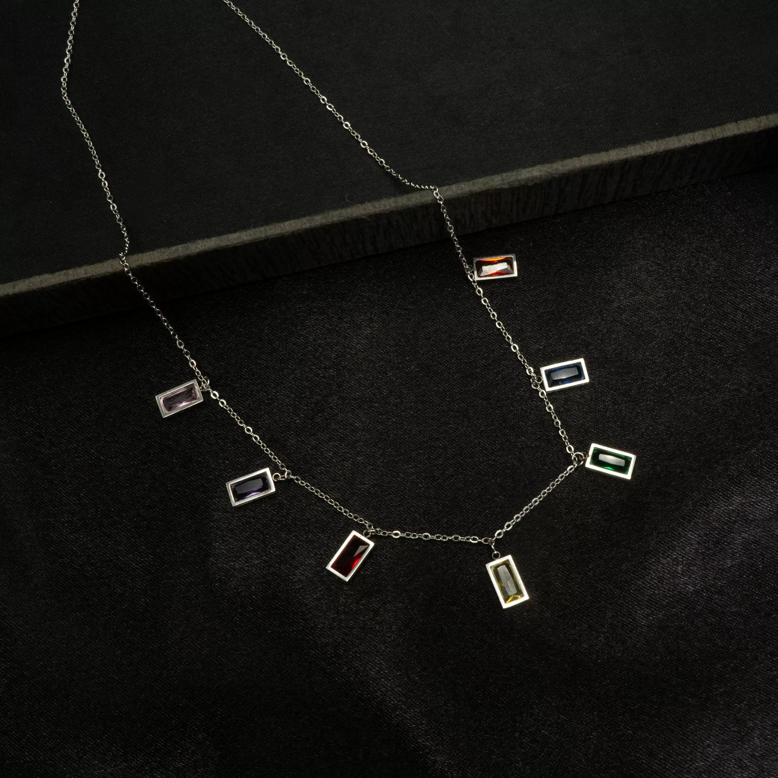 Be the first to review “CH-2308004 – White Gold Plated Multicolor Stones Chain Necklace” Cancel reply