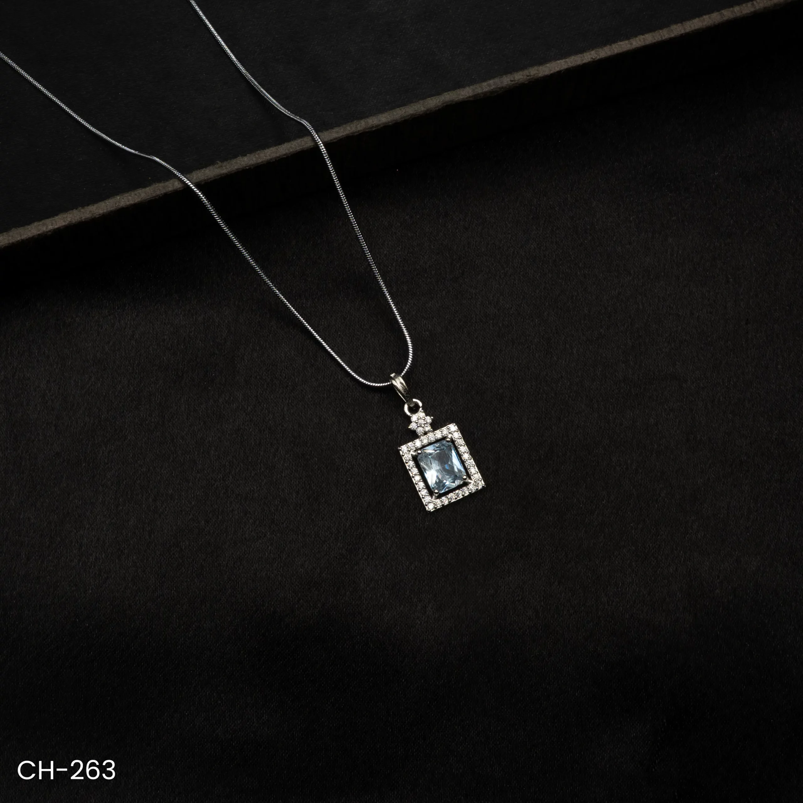 CH-263 – Everyday Sparkle White Gold Plated American Diamond Pendant Chain Necklace