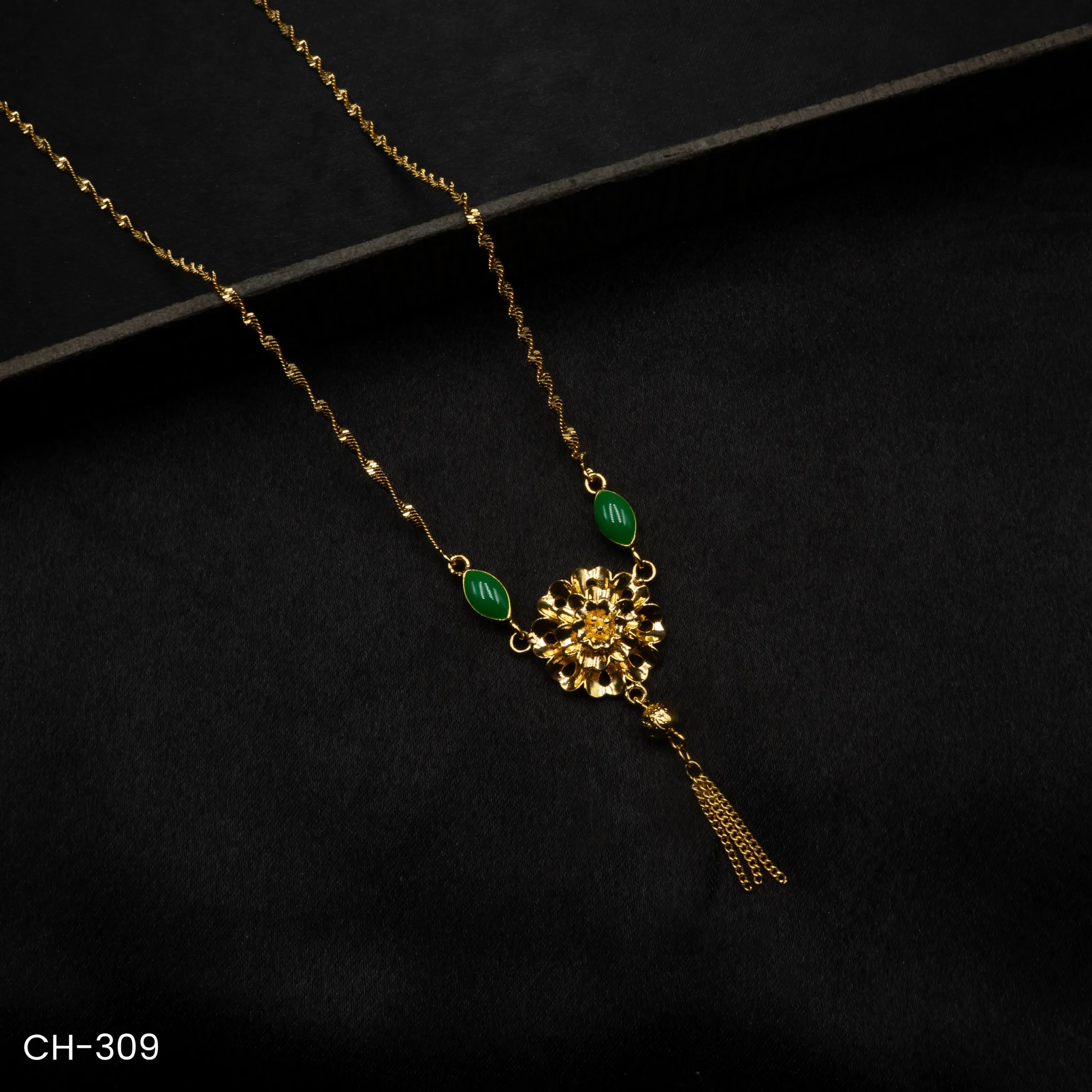 CH-309 – Traditional & Trendy Green Accents Golden Bloom Necklace