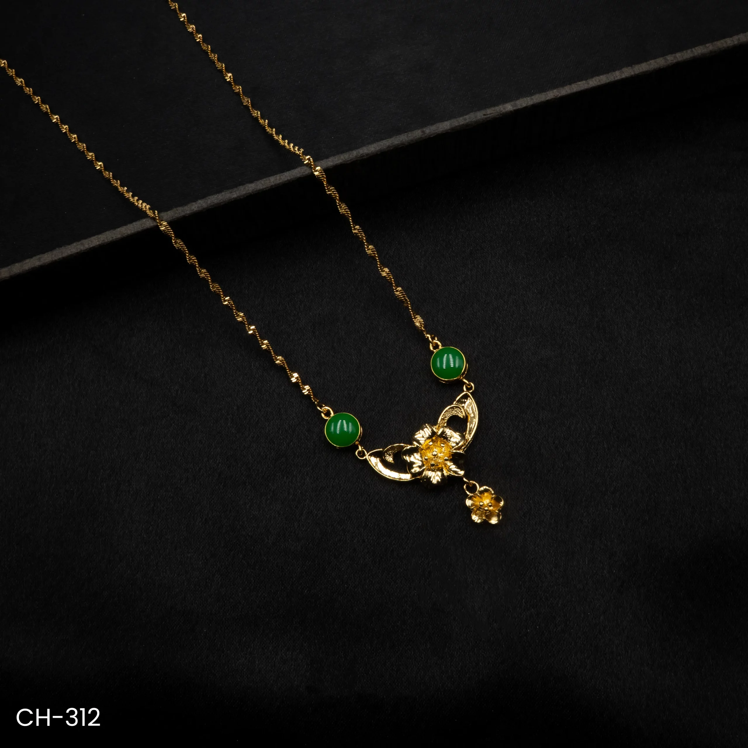 Be the first to review “CH-312 – Elegant & Affordable Green Accent Petal Curve Necklace with Mini Flower Drop” Cancel reply