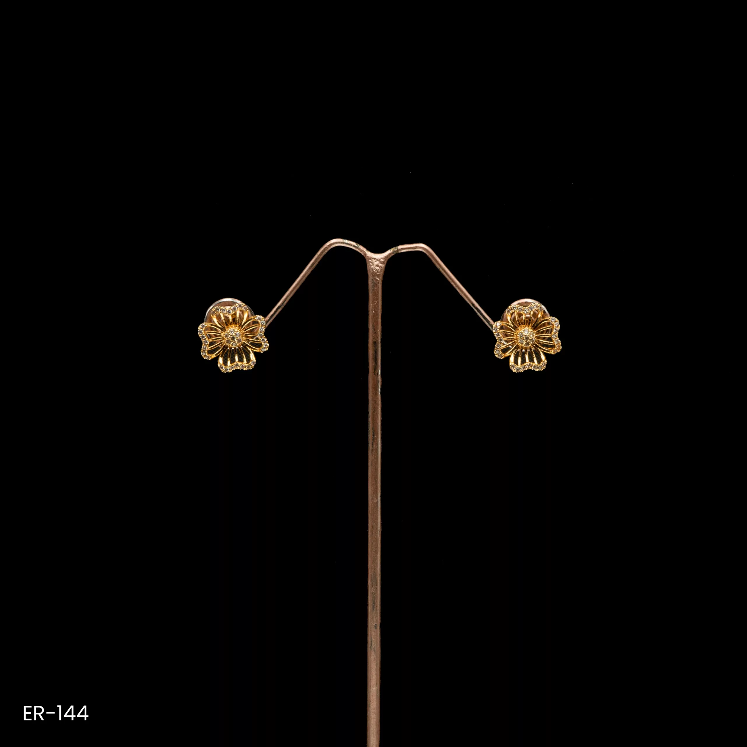 Tags: American Diamond, Brass, Cubic Zirconia, Earrings, Flower, Gold Plated, Studs, Tops