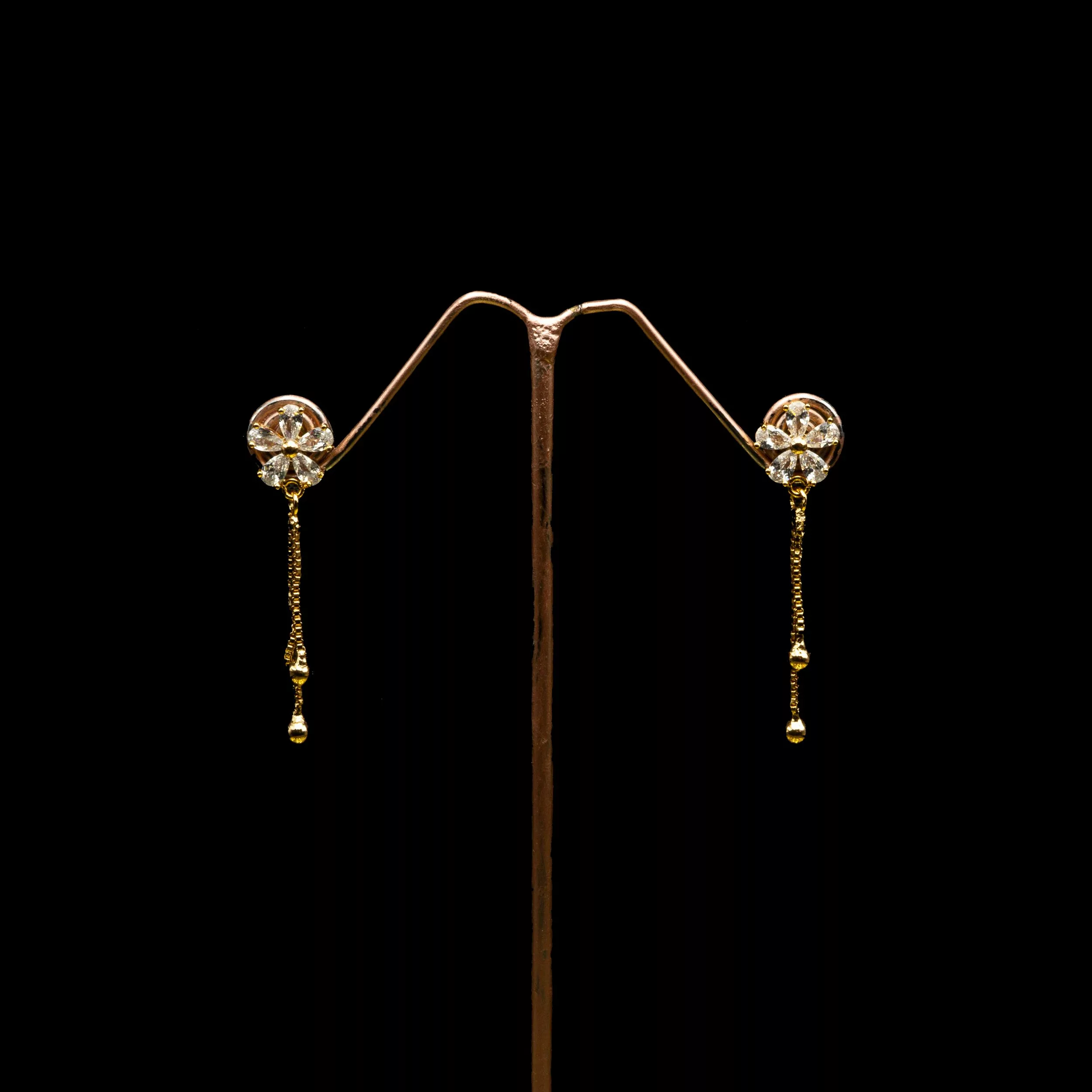 Tags: American Diamond, Brass, Cubic Zirconia, Drop Earrings, Earrings, Flower, Gold Plated, Studs, Tops, White
