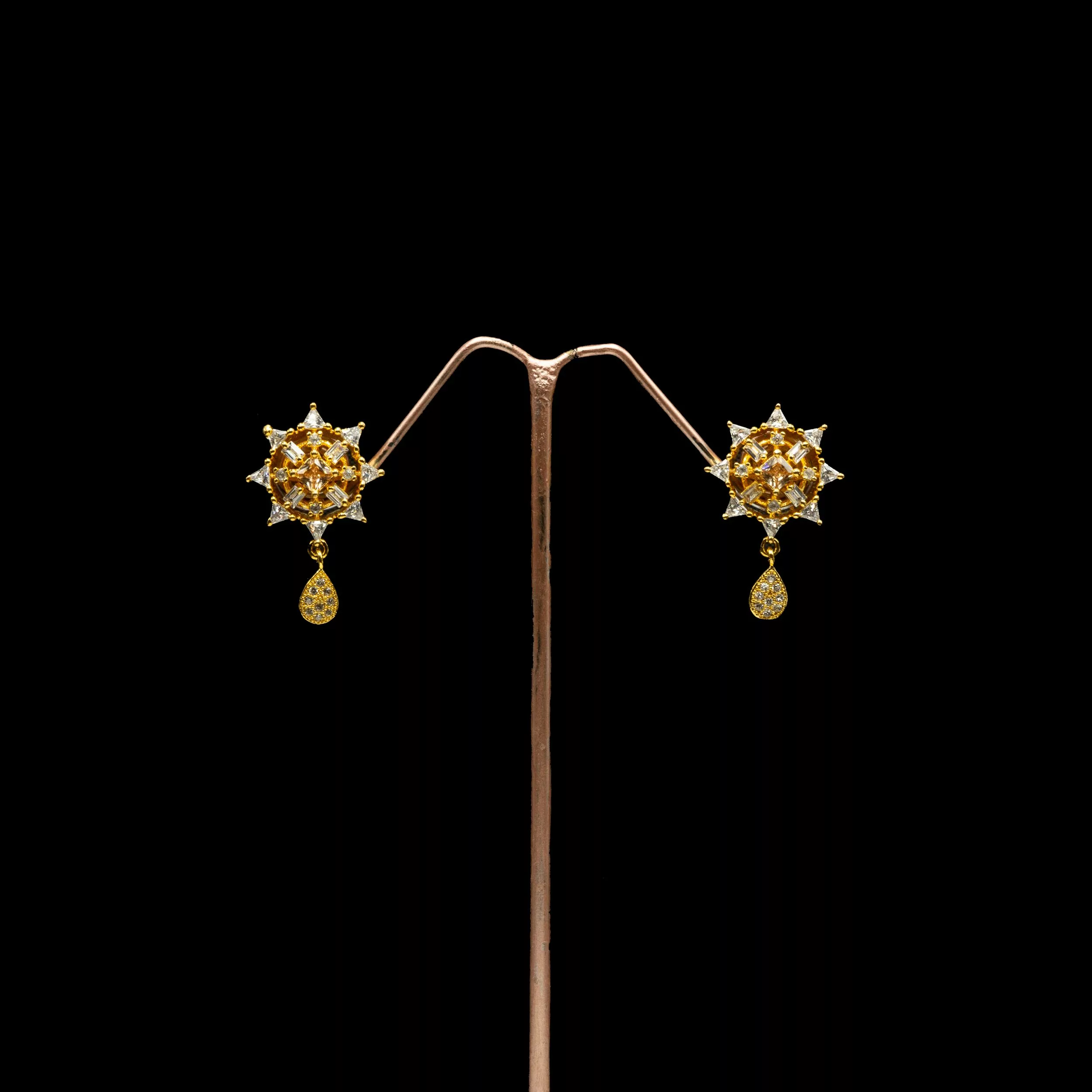 Tags: American Diamond, Brass, Cubic Zirconia, Earrings, Flower, Gold Plated, Studs, Tops, White