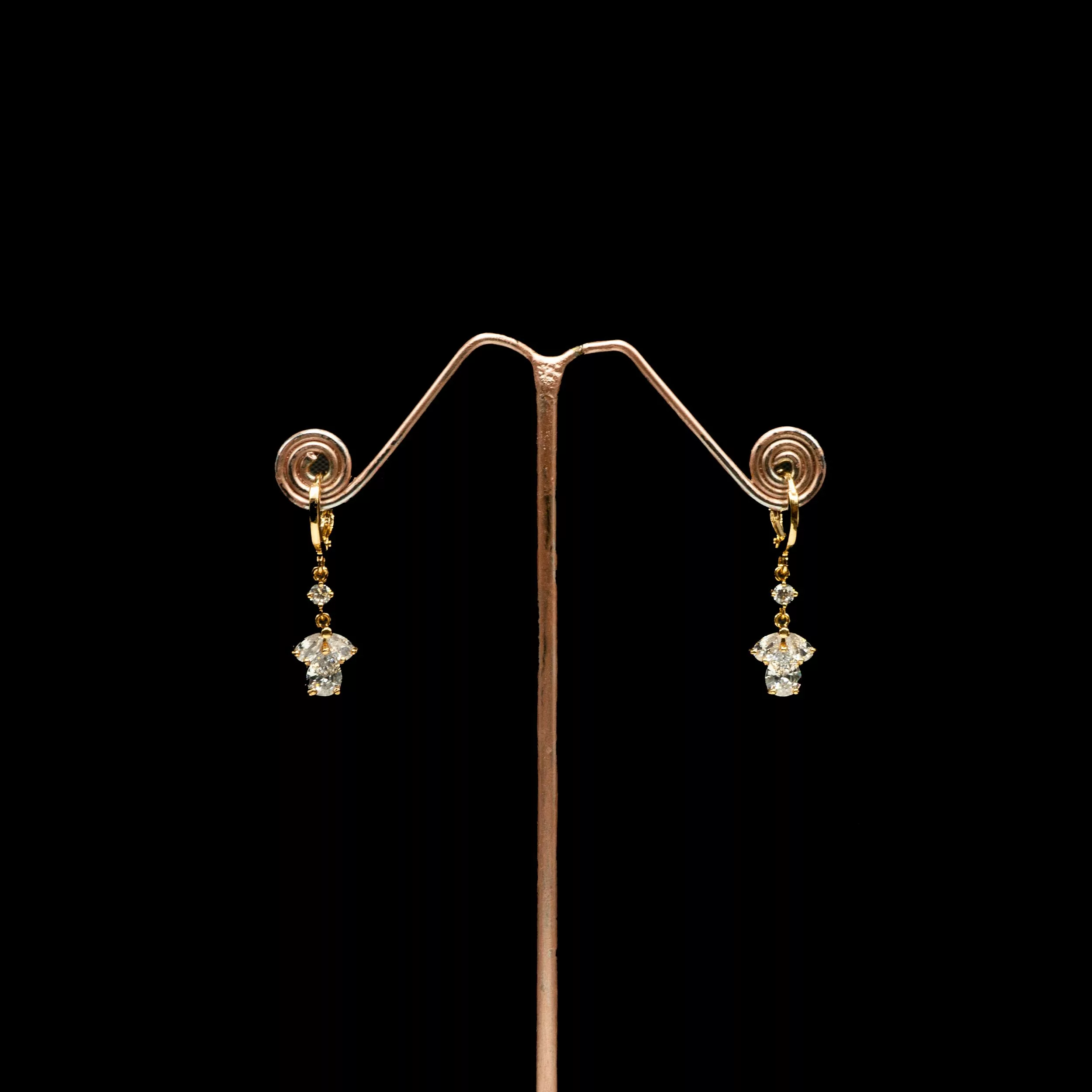 Tags: American Diamond, Brass, Cubic Zirconia, Dangle, Earrings, Gold Plated, White