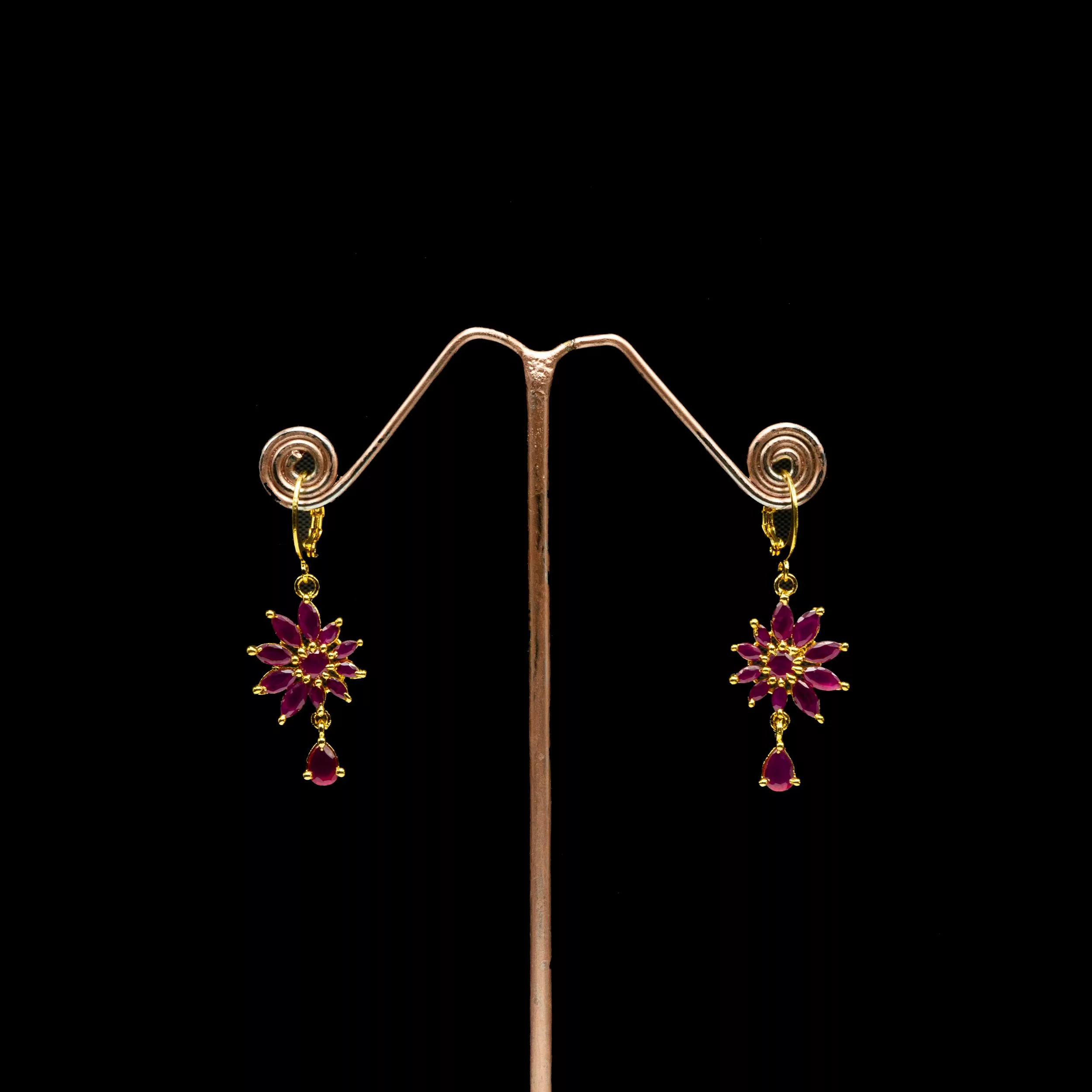 Tags: American Diamond, Brass, Cubic Zirconia, Dangle, Earrings, Gold Plated, Red, Ruby