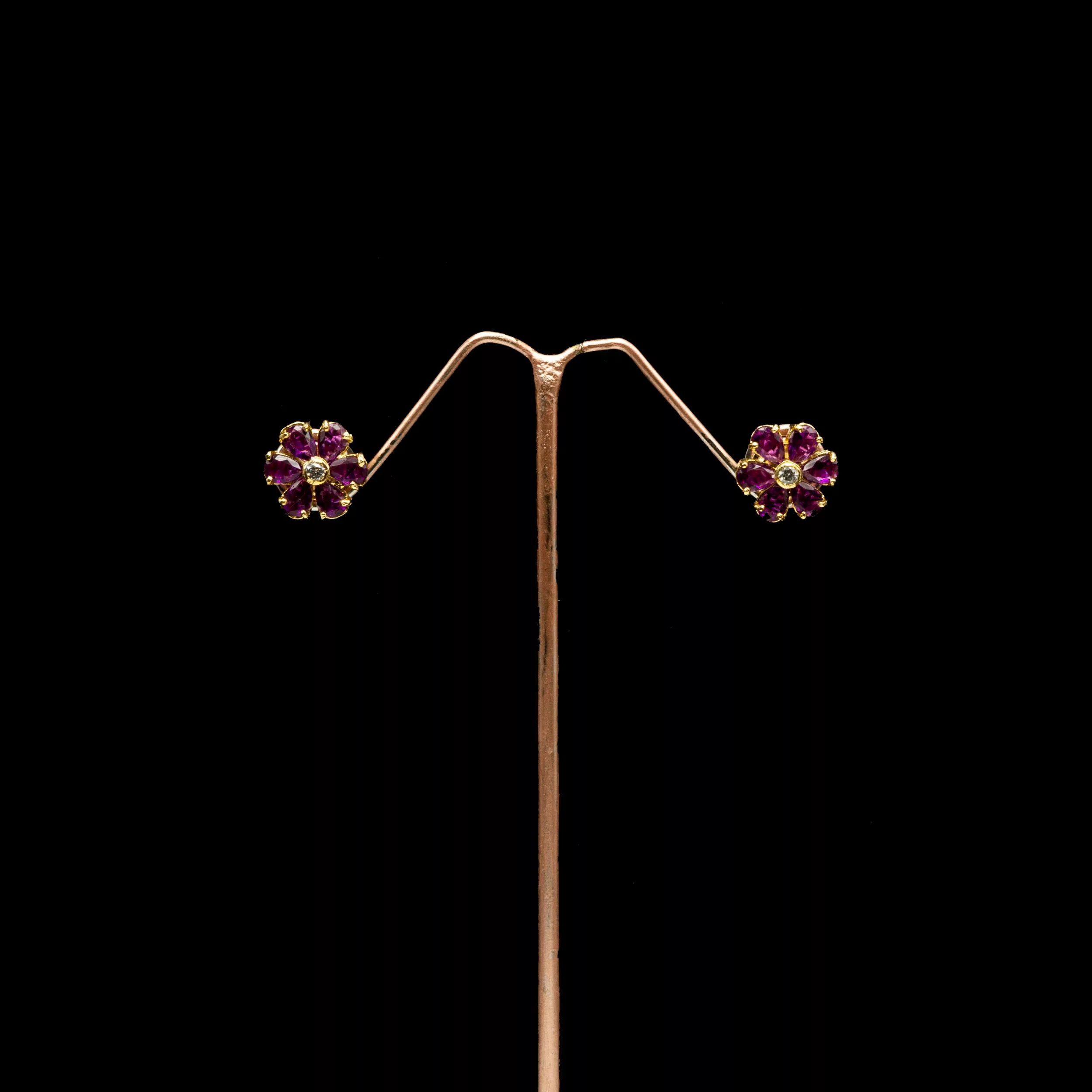 Tags: American Diamond, Brass, Cubic Zirconia, Earrings, Flower, Gold Plated, Minimal, Purple, Studs, Tops