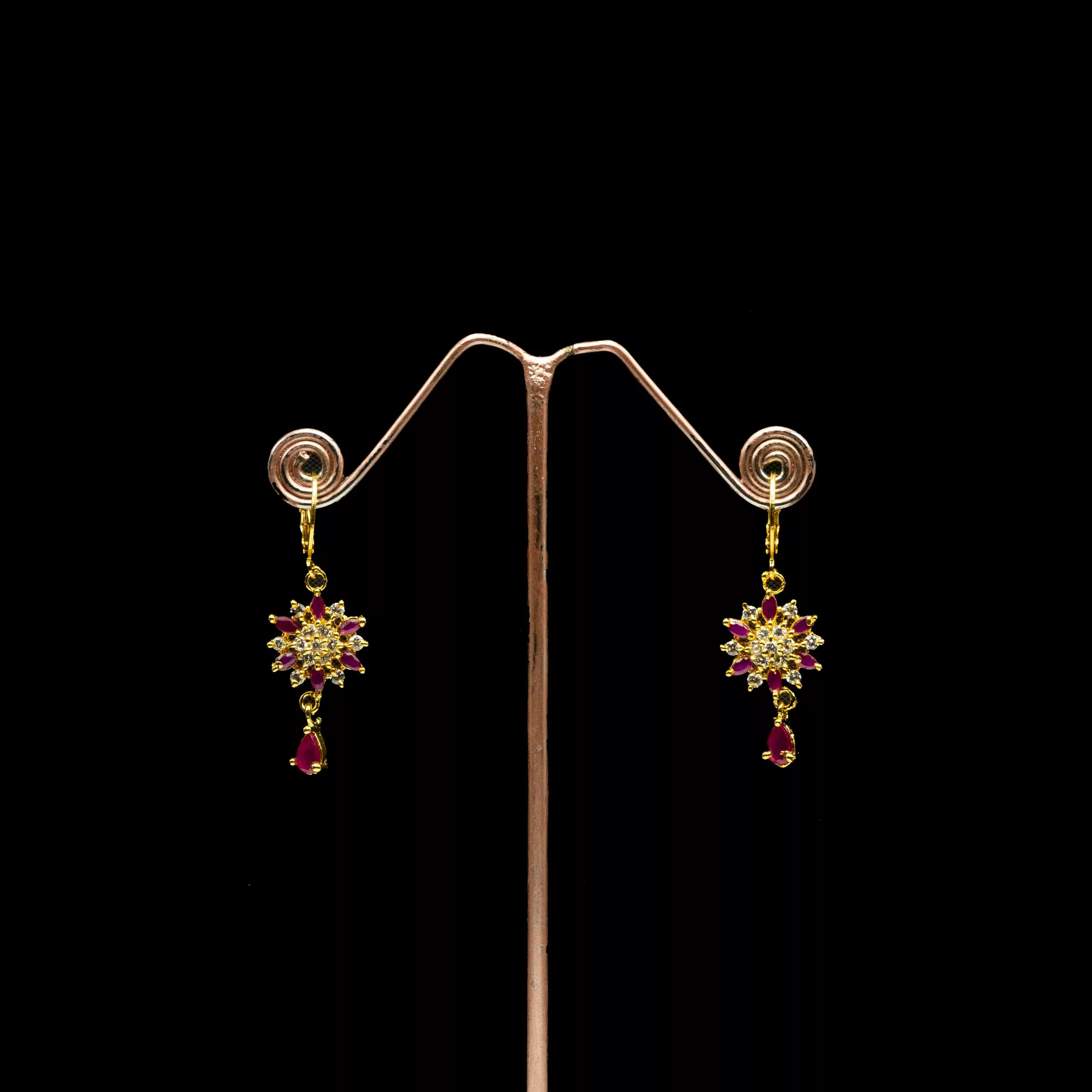 ER-2103036 – American Diamond Dangle Ruby Earrings