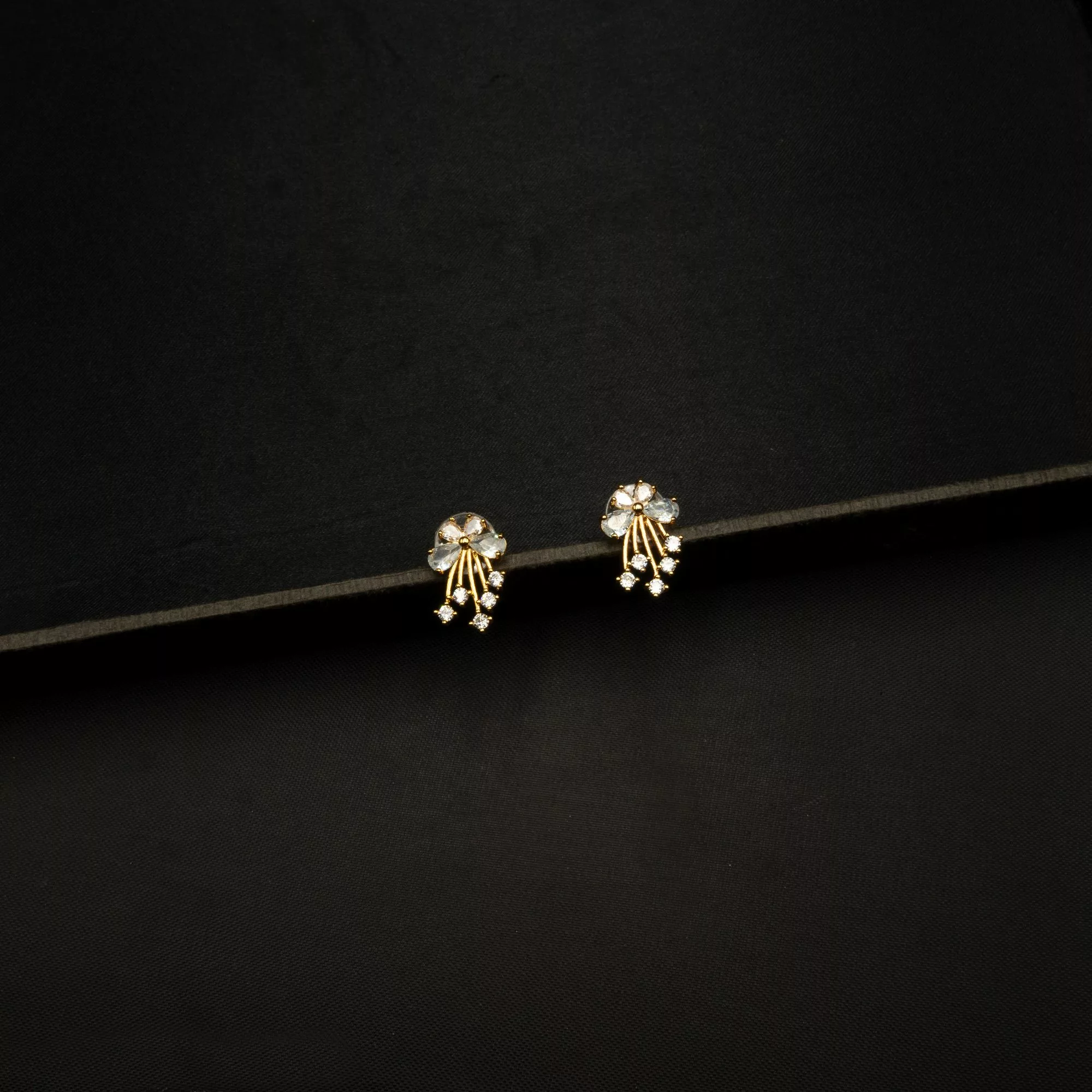 Tags: American Diamond, Brass, Cubic Zirconia, Earrings, Flower, Gold Plated, Studs, Teardrop, Tops
