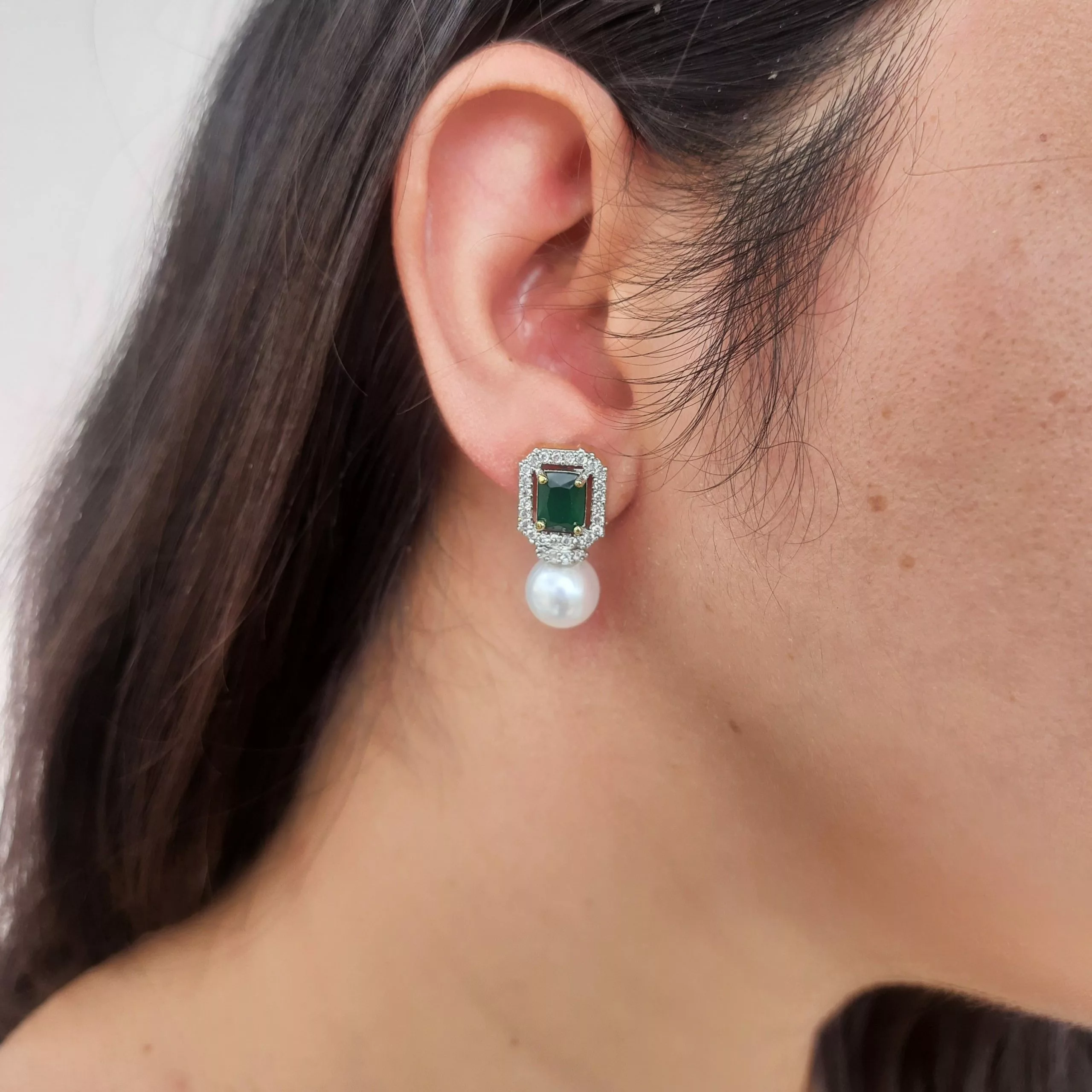 ER-2208003 – American Diamond Emerald Pearl Drop Stud Earrings