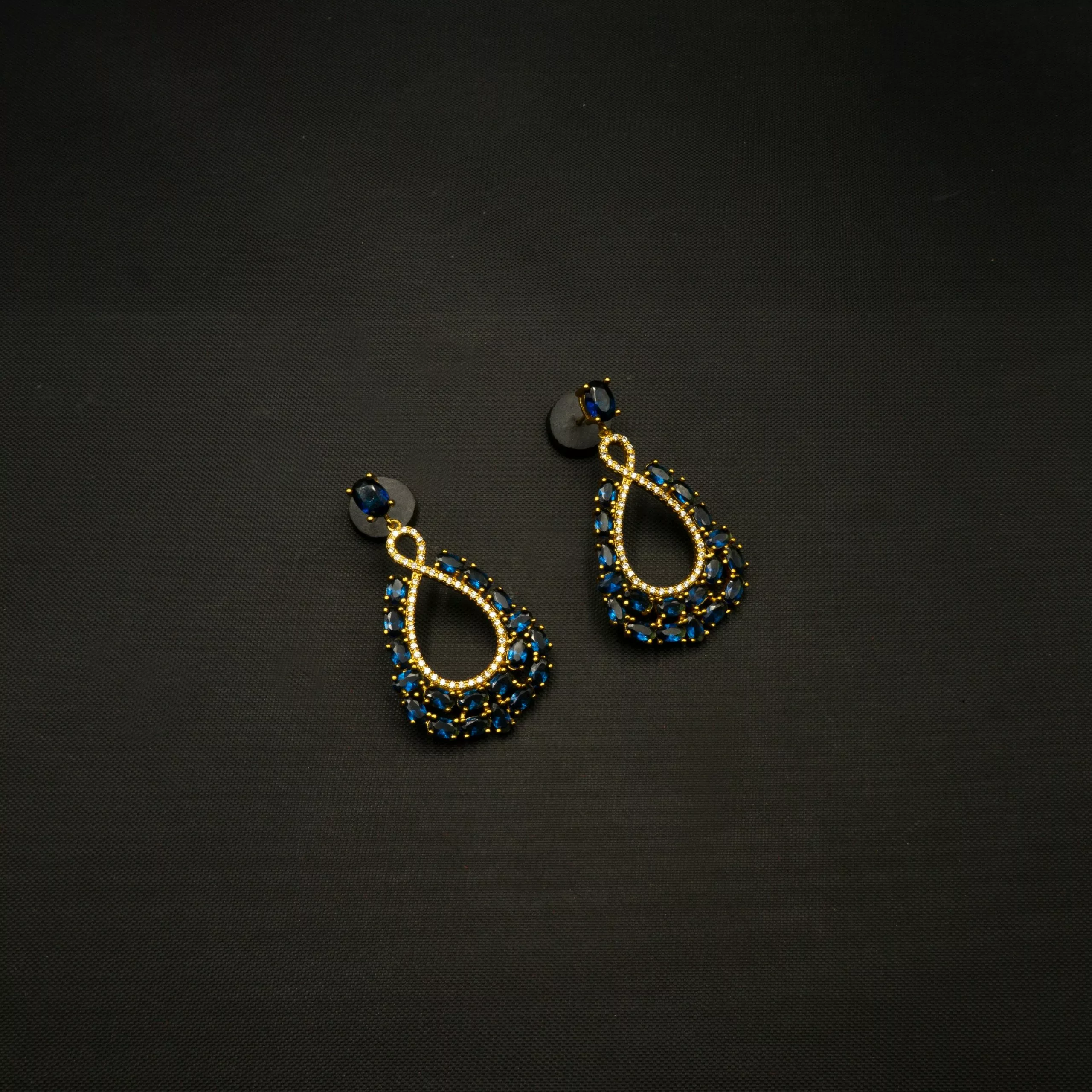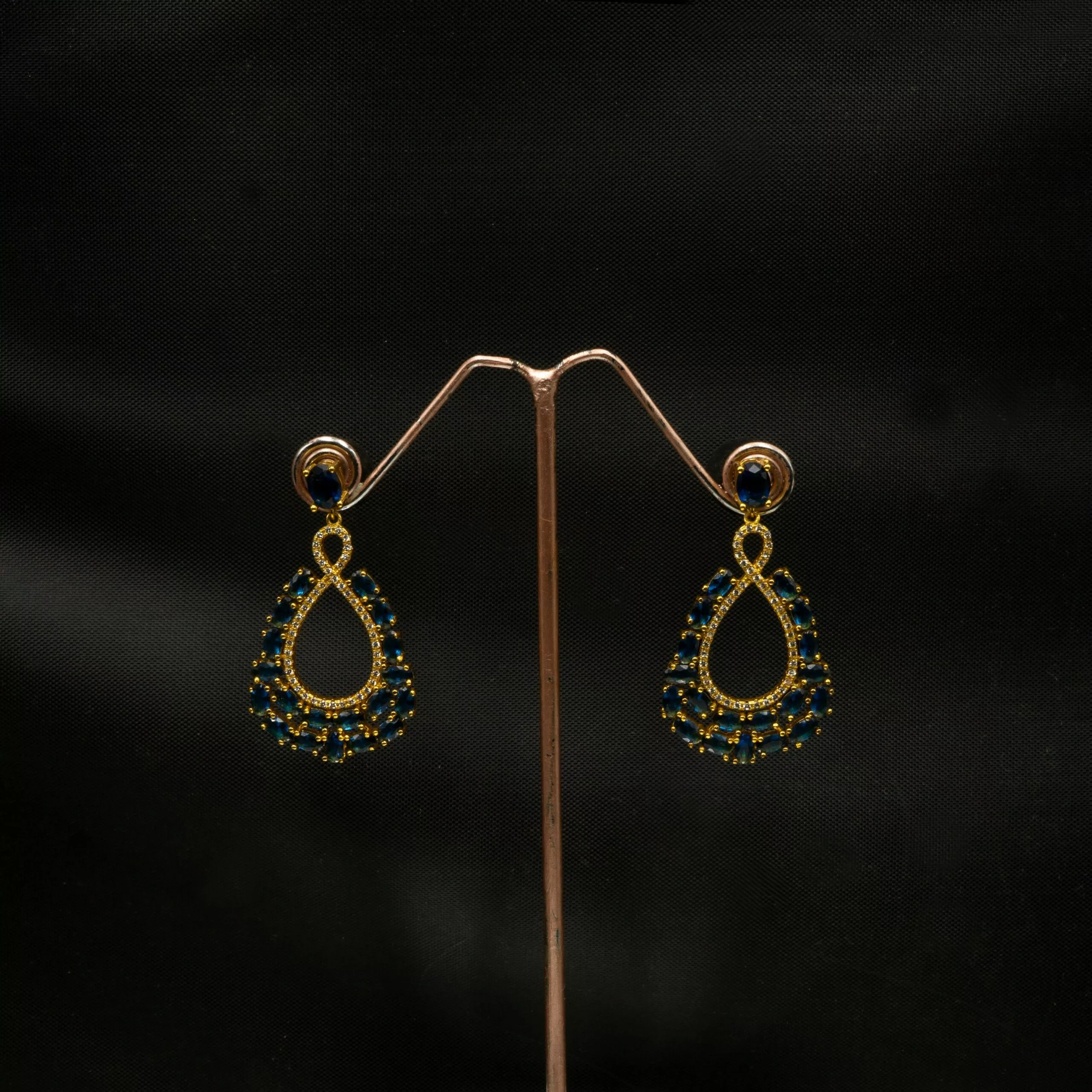 Tags: American Diamond, Blue Stones, Brass, Cubic Zirconia, Dangle, Earrings, Gold Plated, Golden
