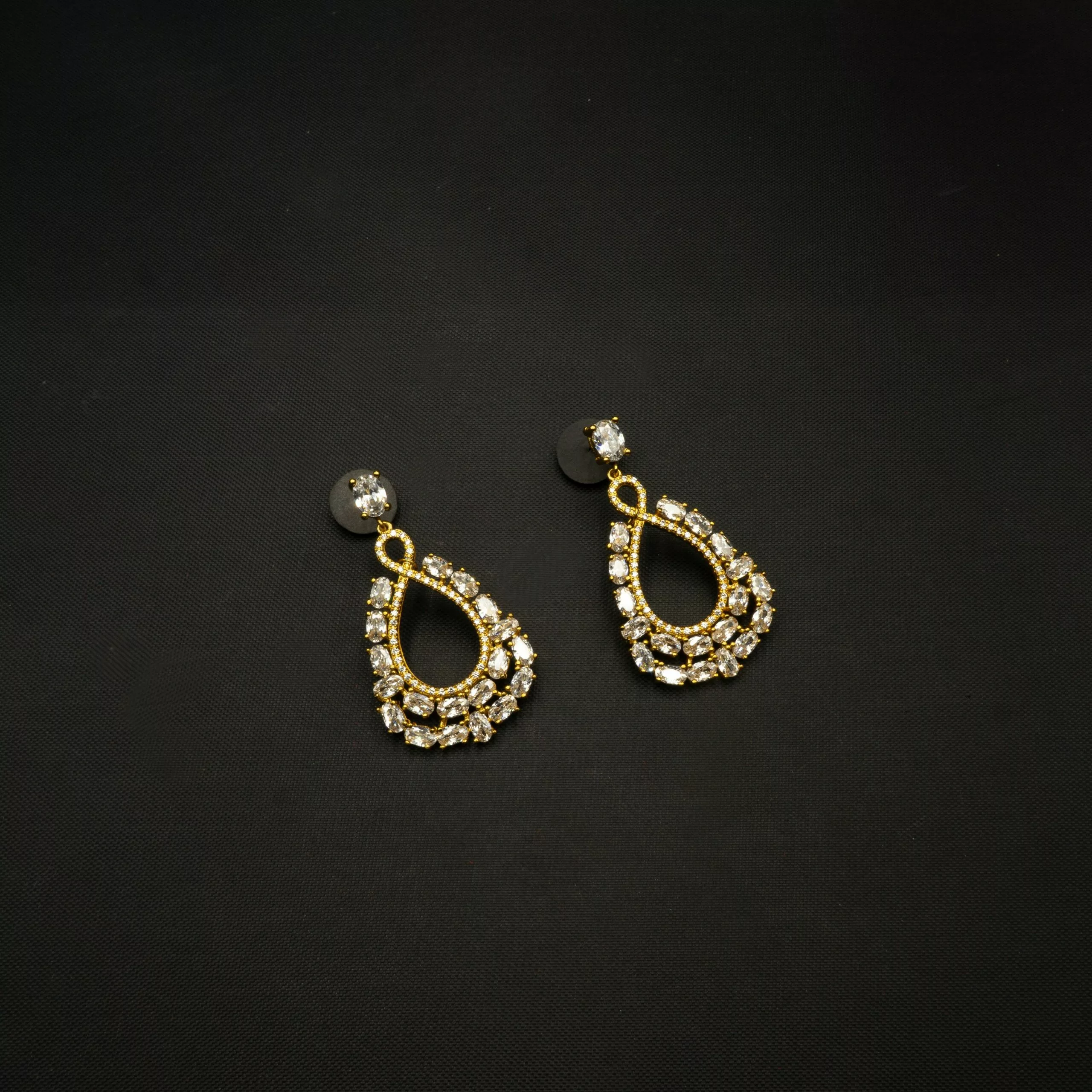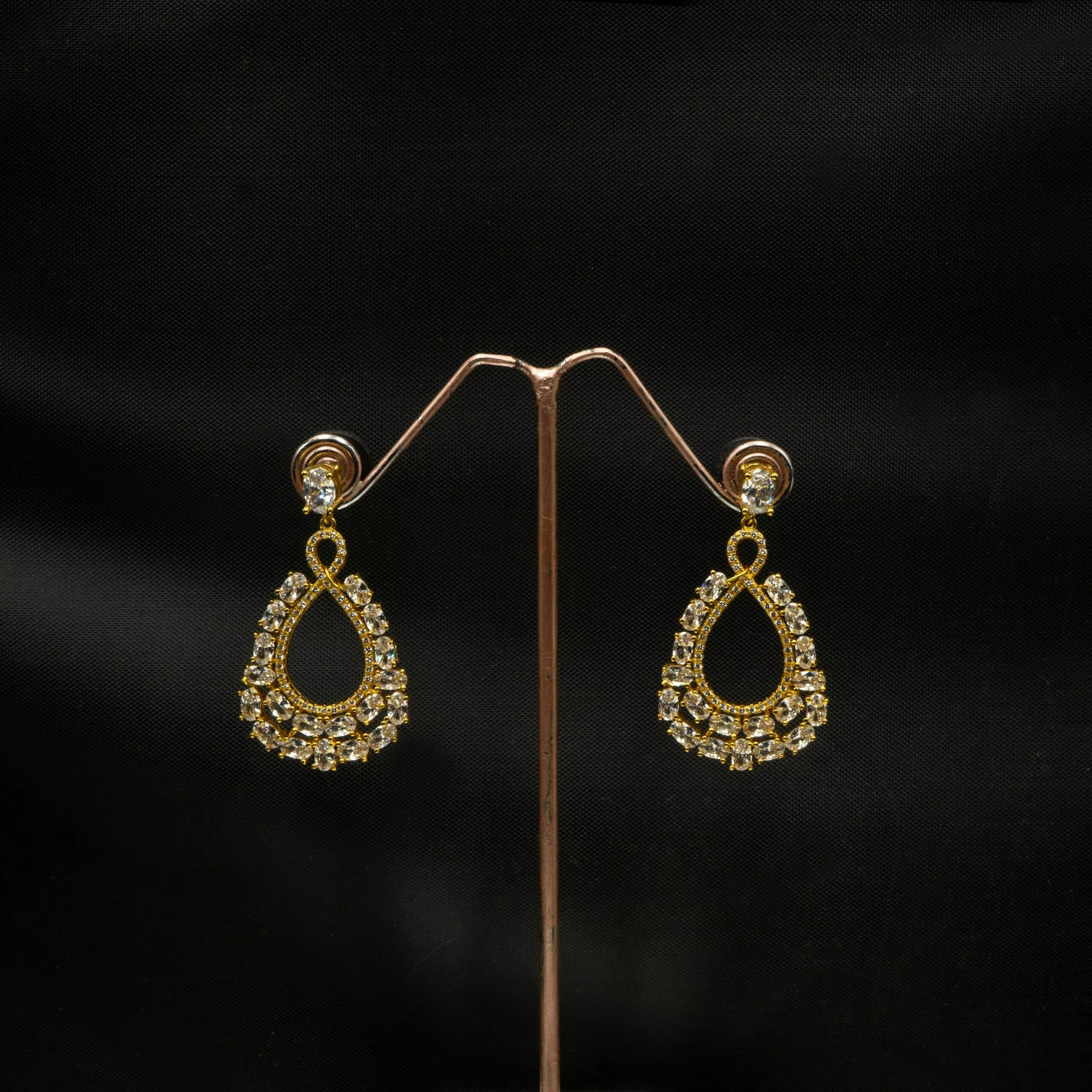 Tags: American Diamond, Brass, Cubic Zirconia, Dangle, Earrings, Gold Plated, Golden, White