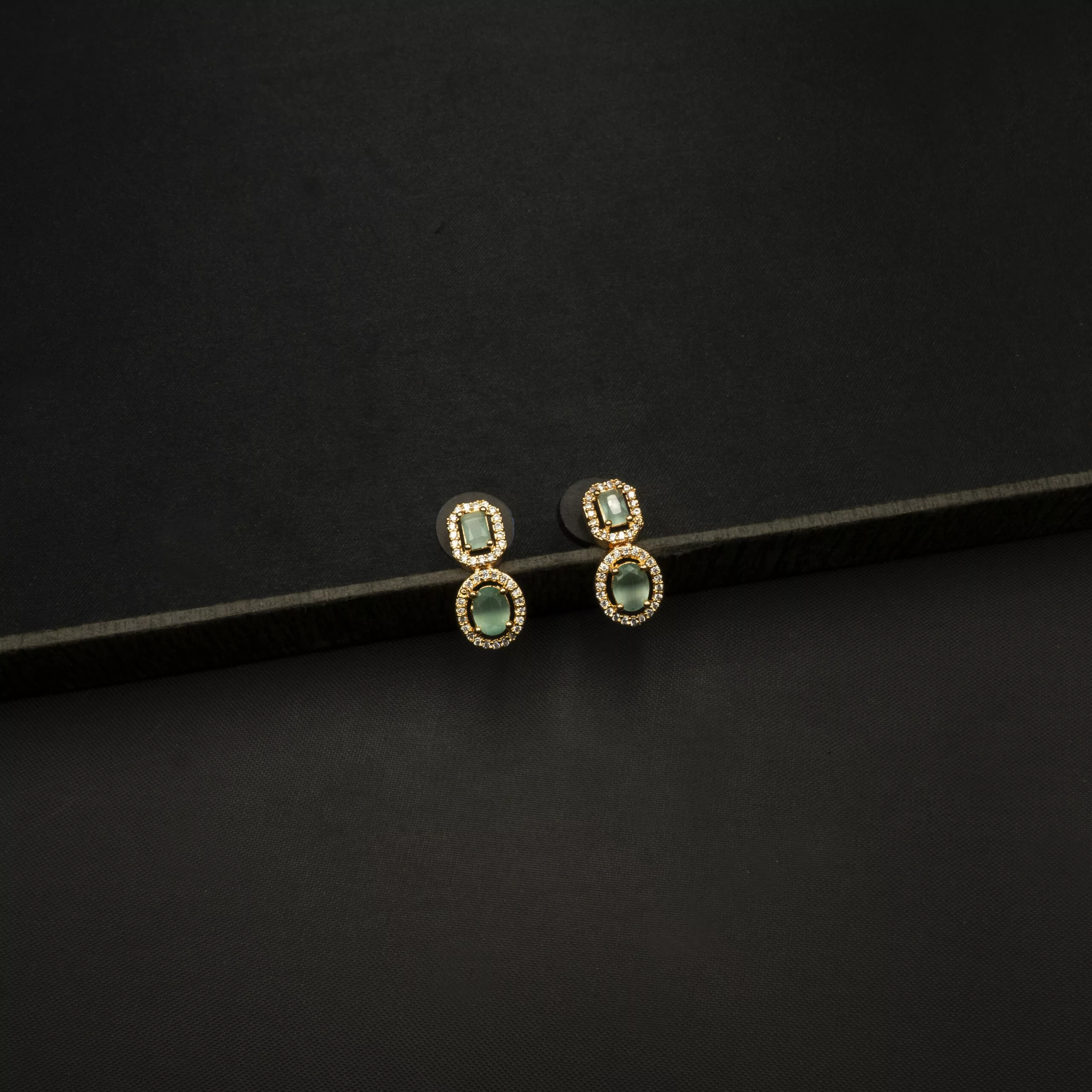 ER-2212028 – American Diamond & Mint Stones Dangle Earrings