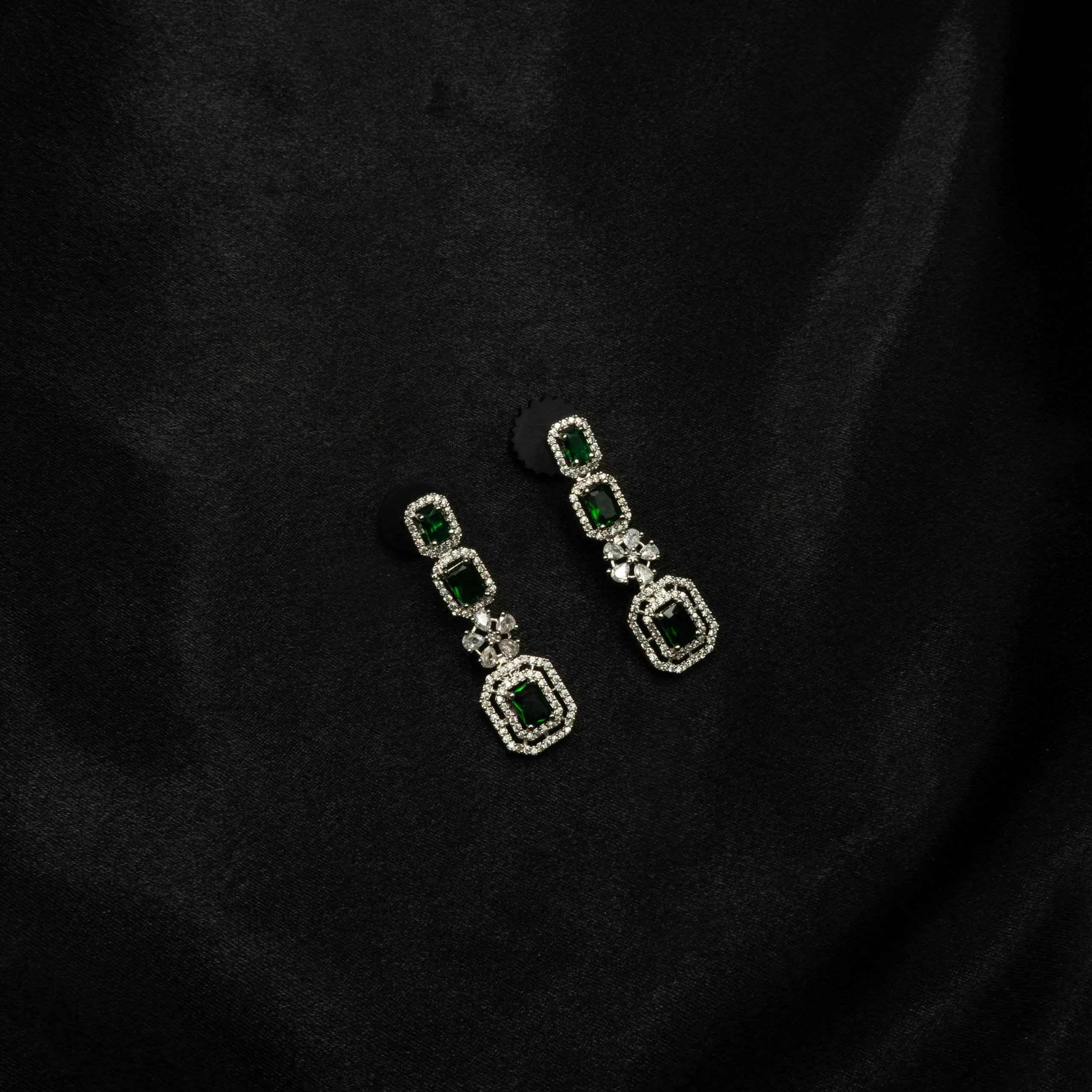 ER-2307176 – American Diamond & Emerald Dangle Statement Earrings