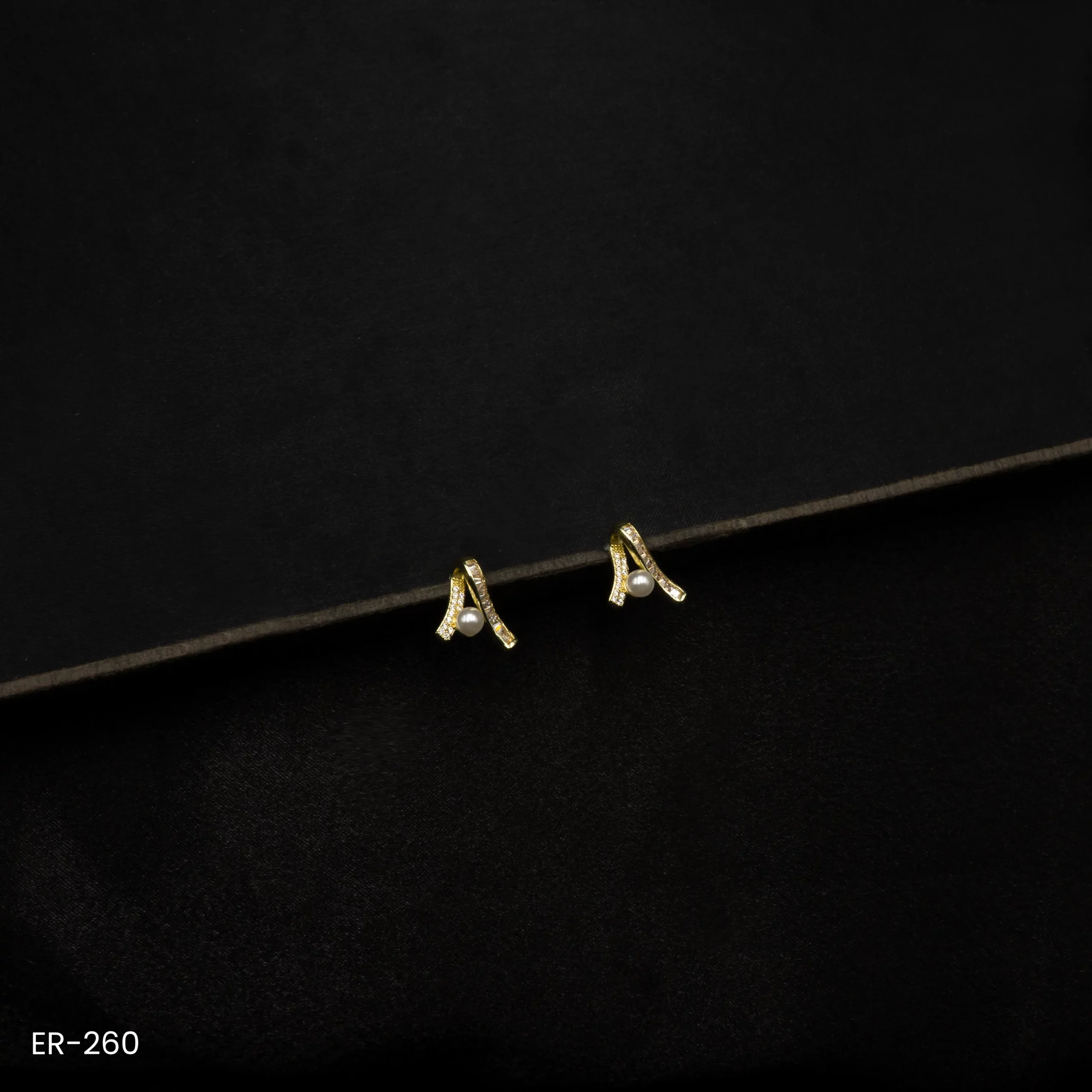 ER-260 – Minimalist Twisted Gold Plated Earrings with Pearl Accent