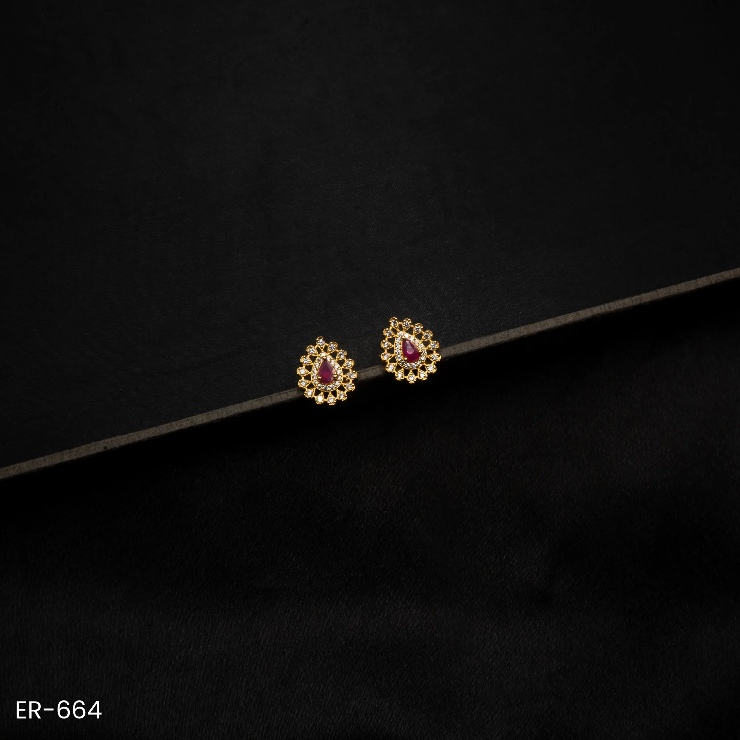 ER-664 – Gold Plated Teardrop Design American Diamond & Ruby Contemporary Stud Earrings