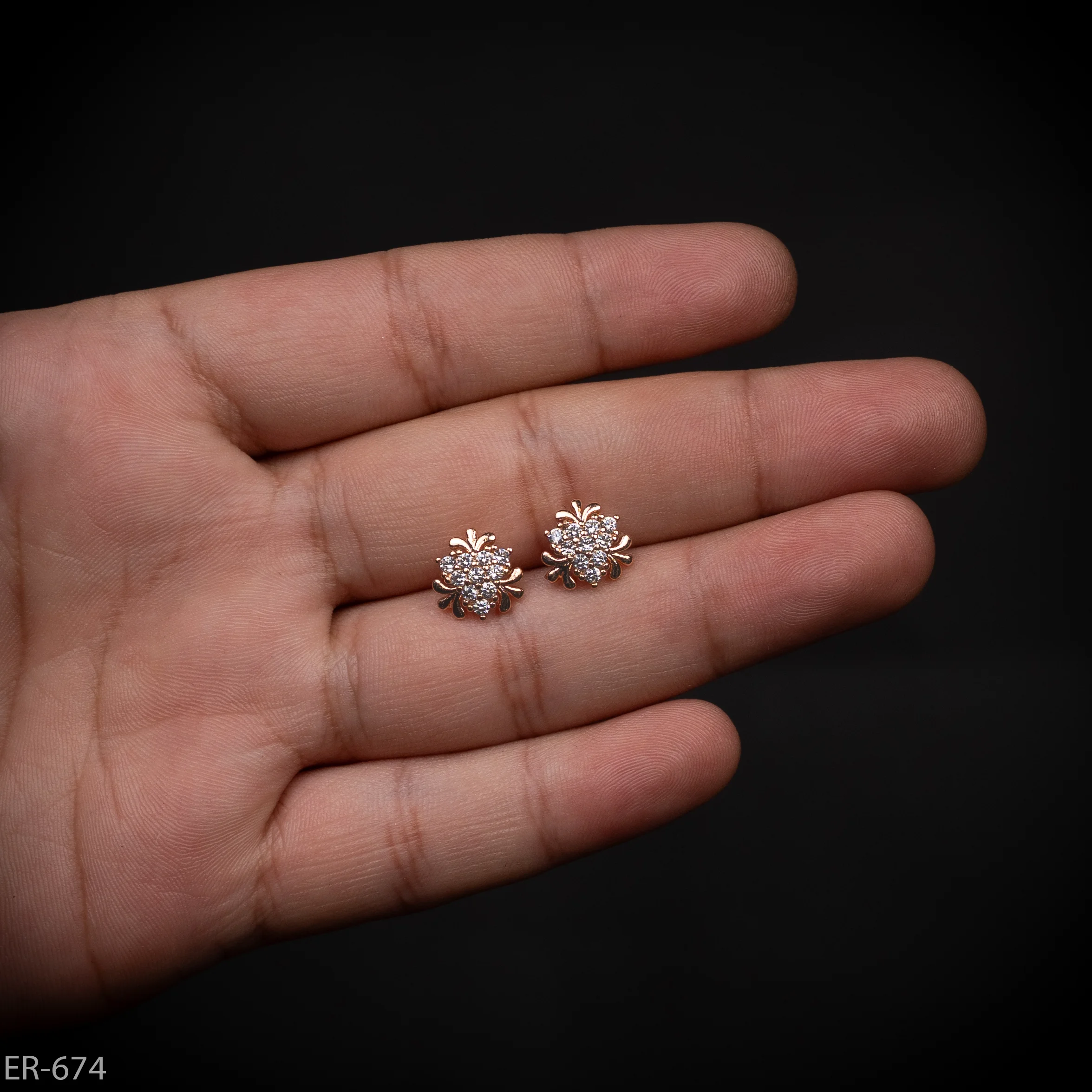 Be the first to review “ER-674 – Gold Plated Mini American Diamond Flower Stud Earrings” Cancel reply