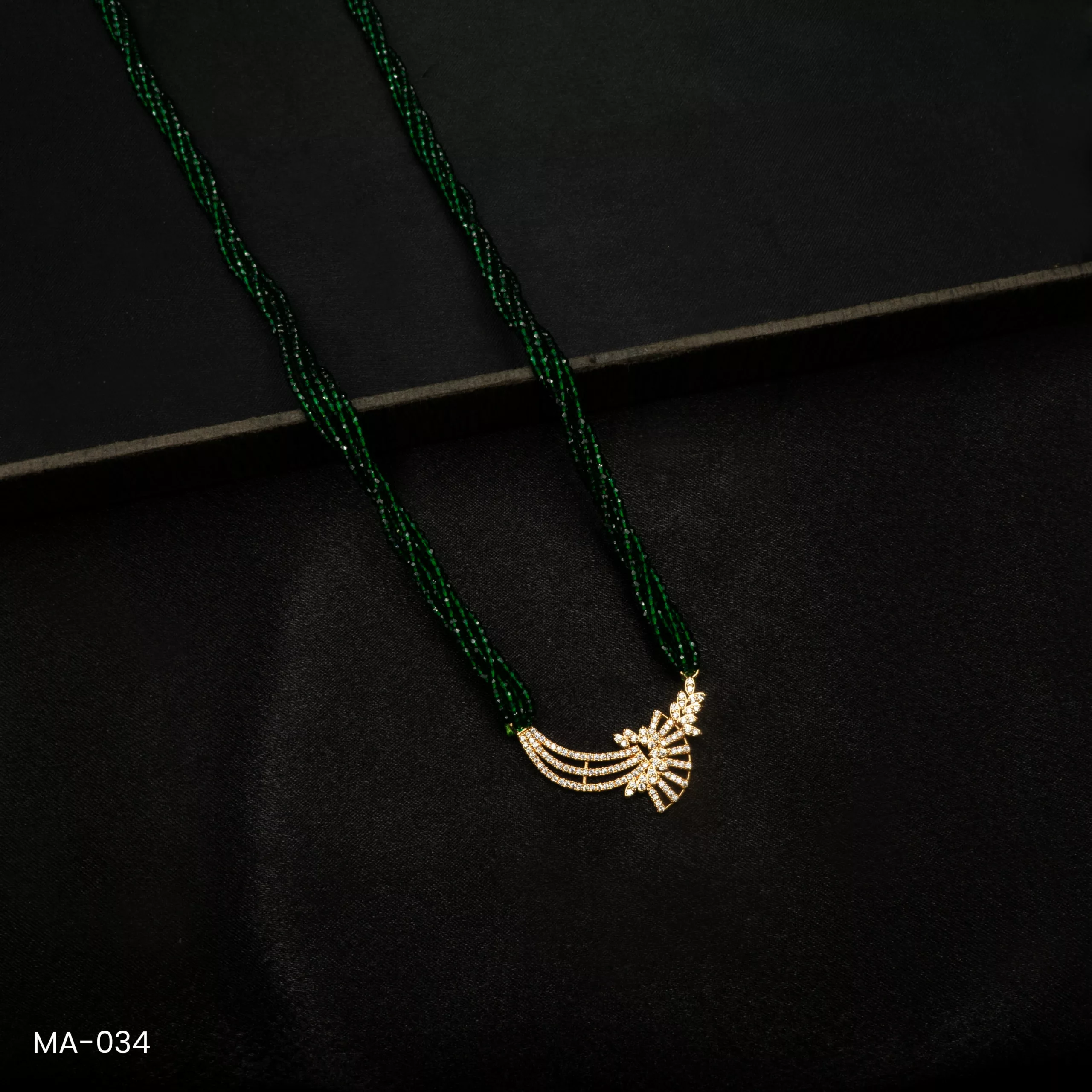 MA-034 – Gold Plated American Diamond Green Long Hydropotey Mangalsutra