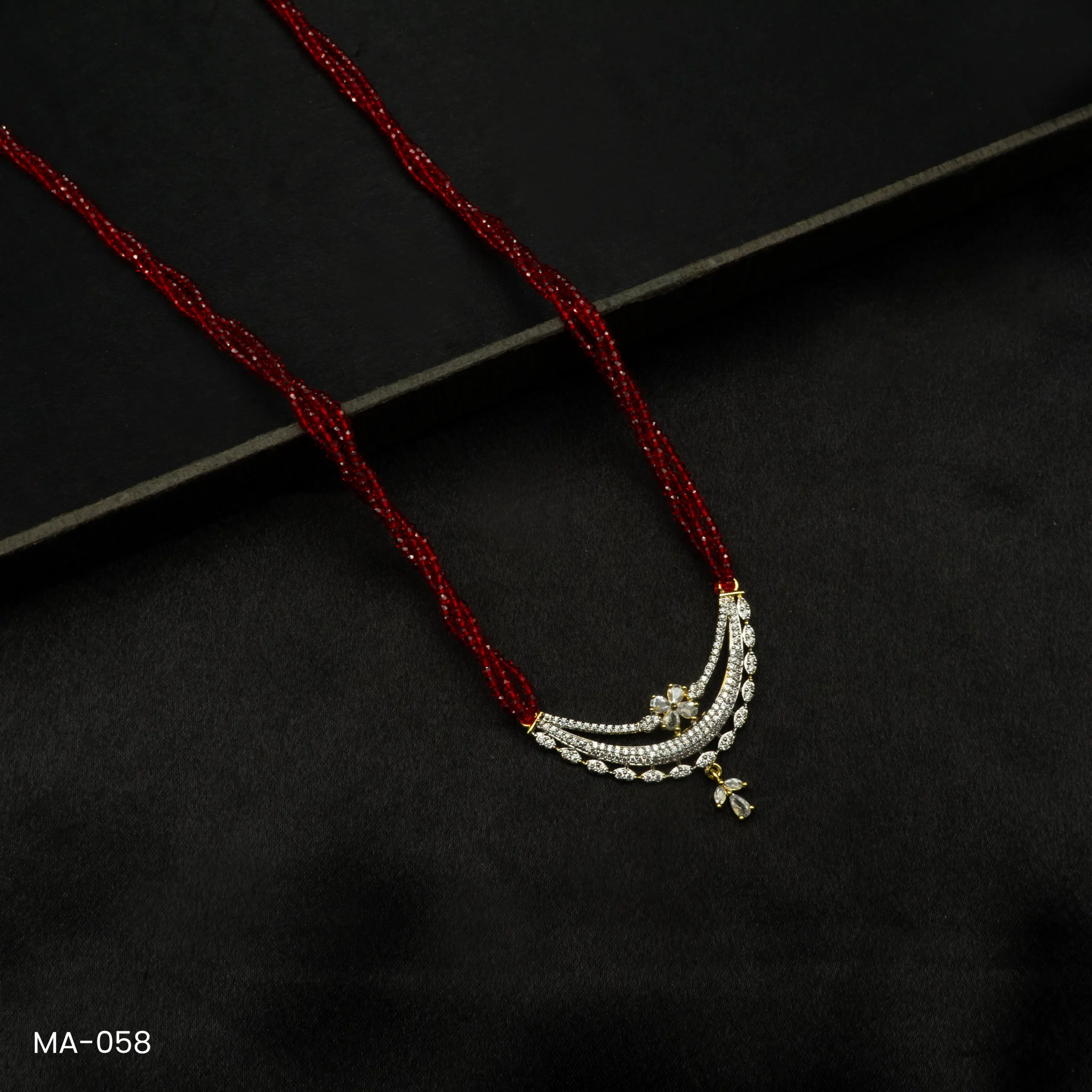 Be the first to review “MA-058 – Gold Plated American Diamond Long Red Hydropotey Mangalsutra” Cancel reply