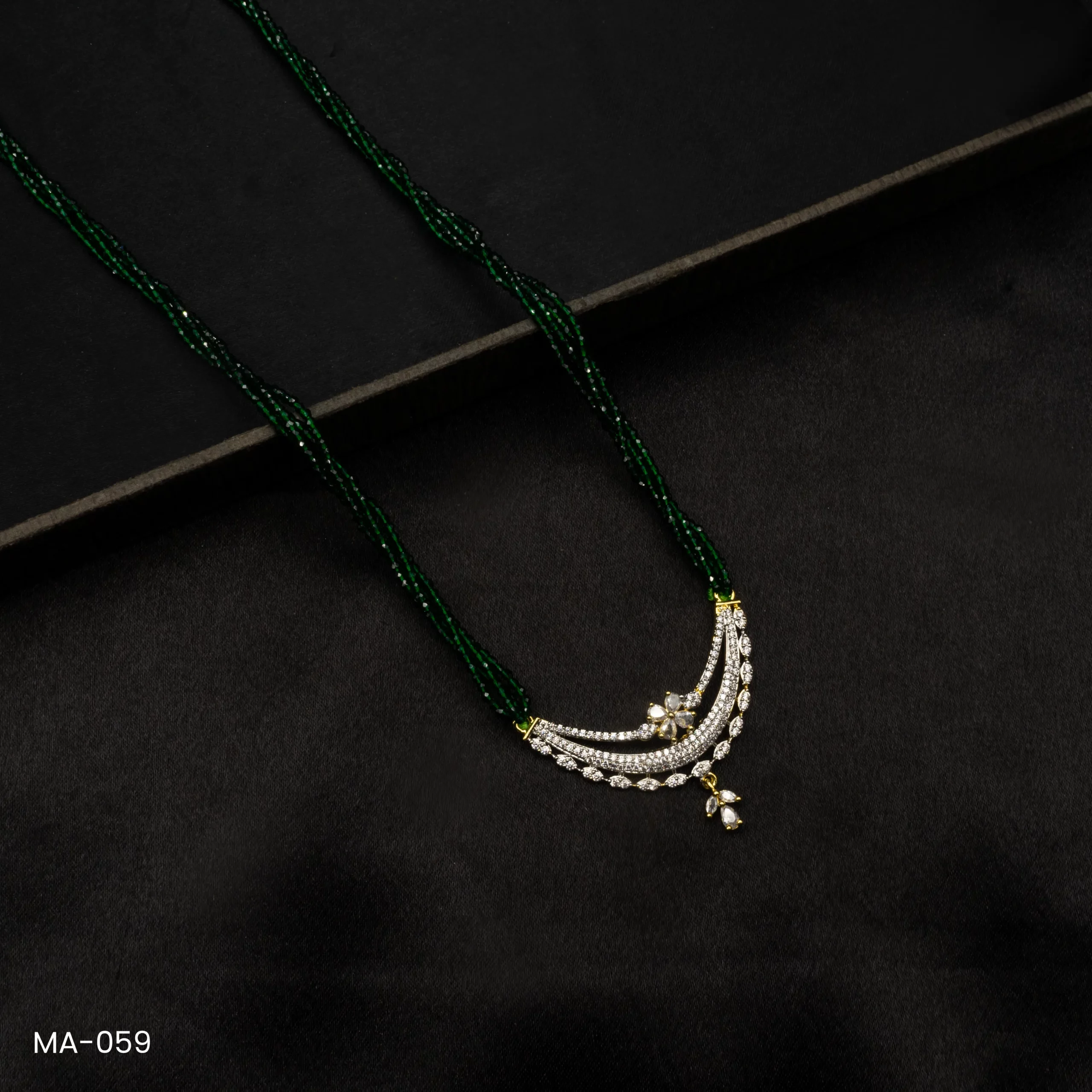 Be the first to review “MA-059 – Gold Plated American Diamond Long Green Hydropotey Mangalsutra” Cancel reply