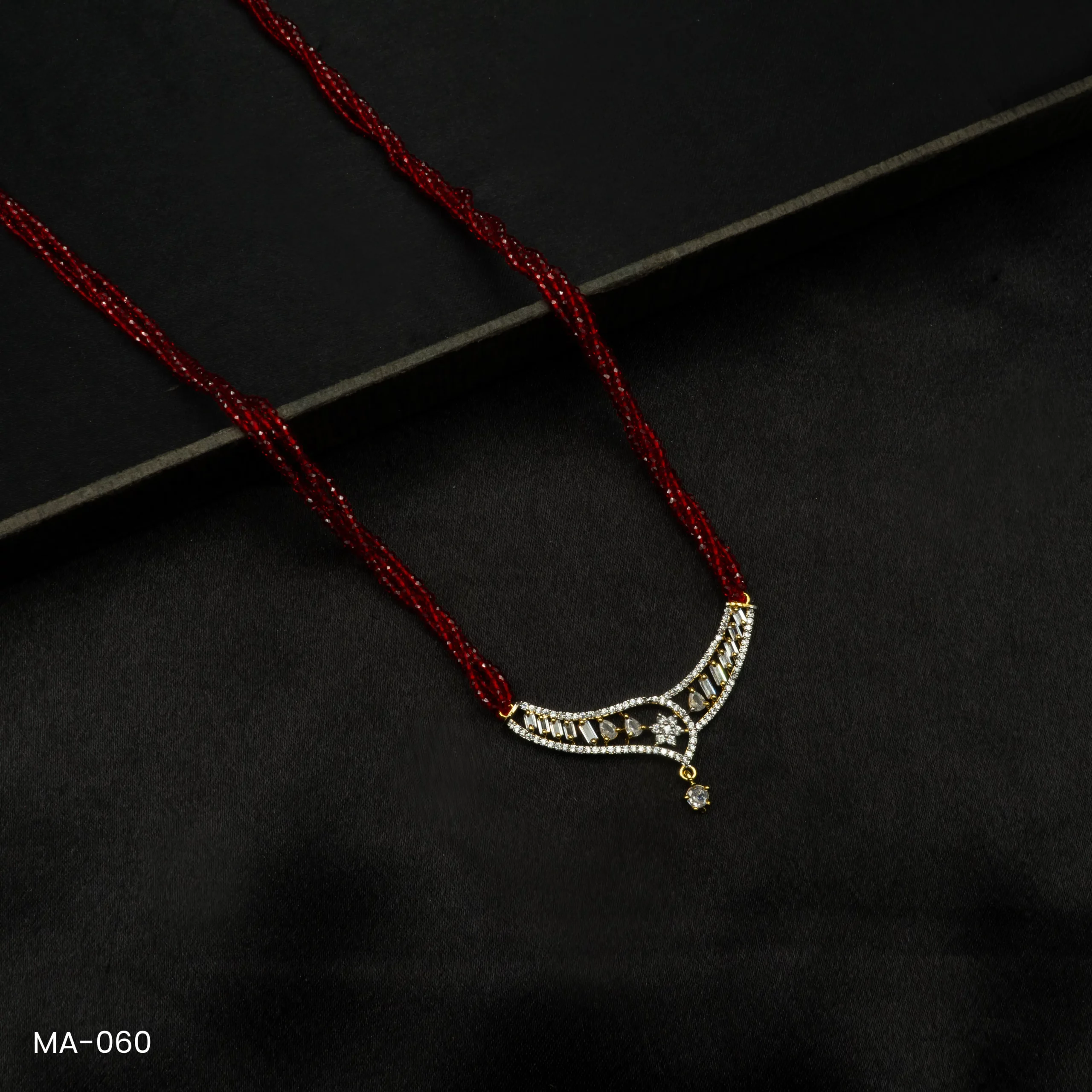 MA-060 – Gold Plated American Diamond Long Red Hydropotey Mangalsutra