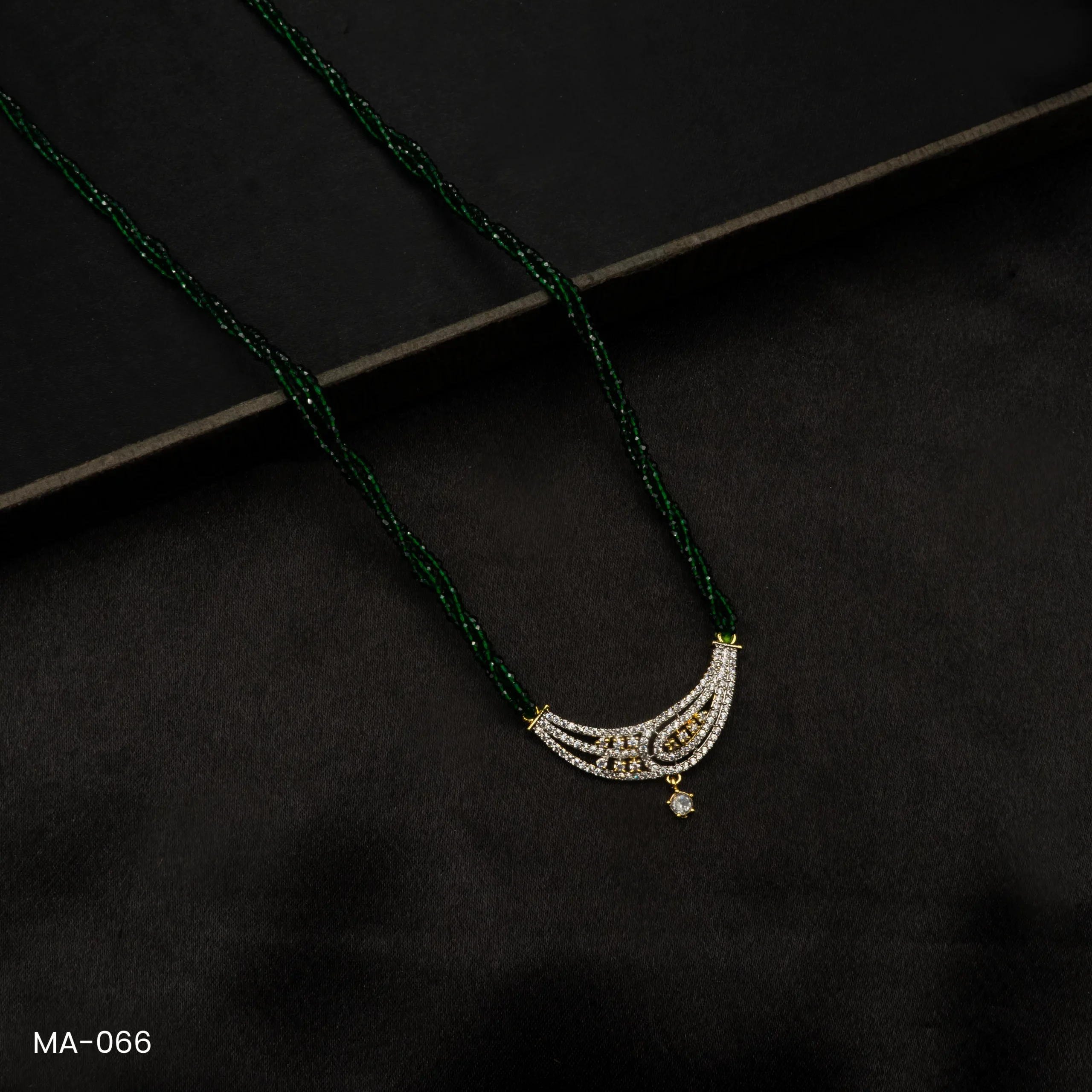MA-066 – Gold Plated American Diamond Long Green Hydropotey Mangalsutra