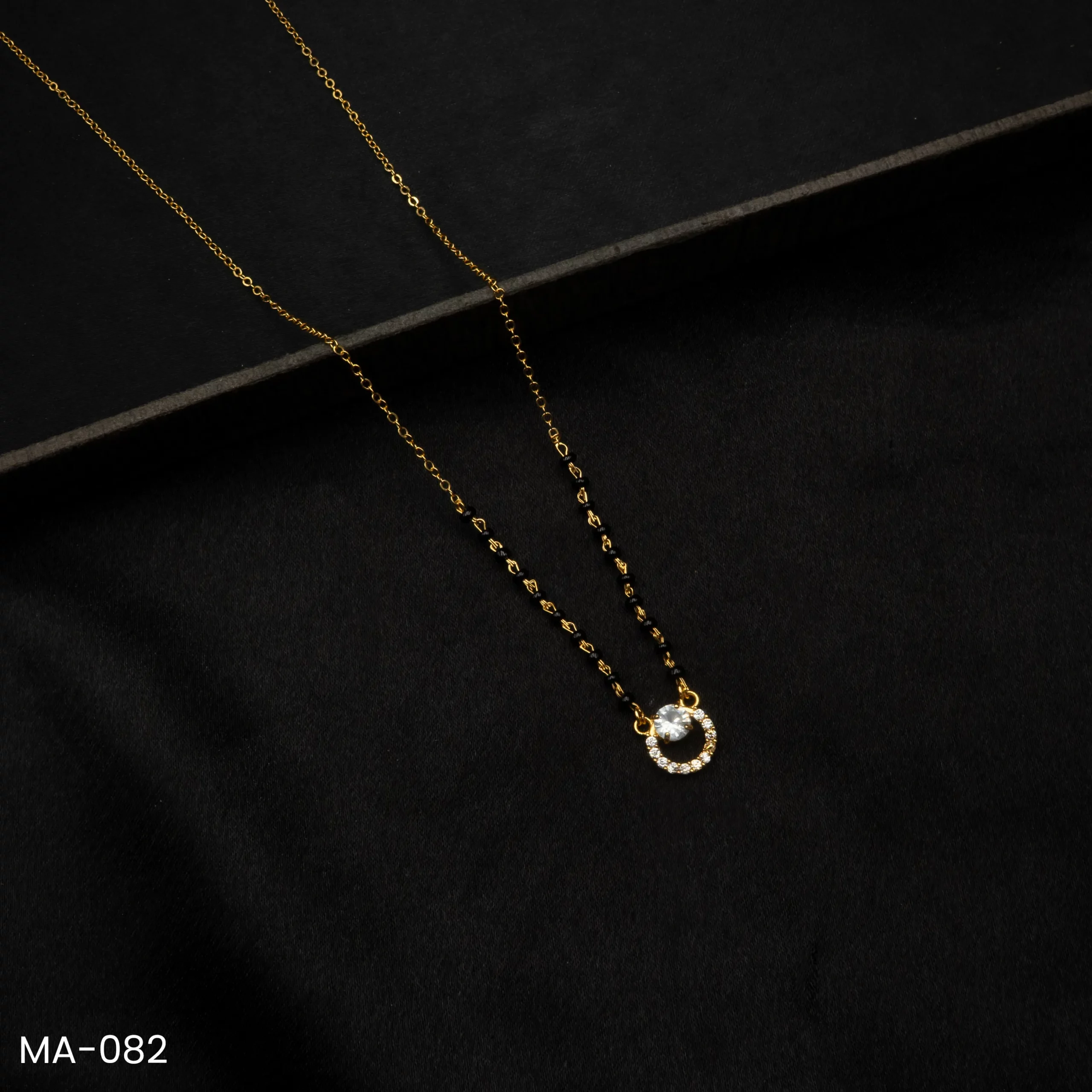 MA-082 – Minimal Gold Plated Mangalsutra Circle with White American Diamond Stone