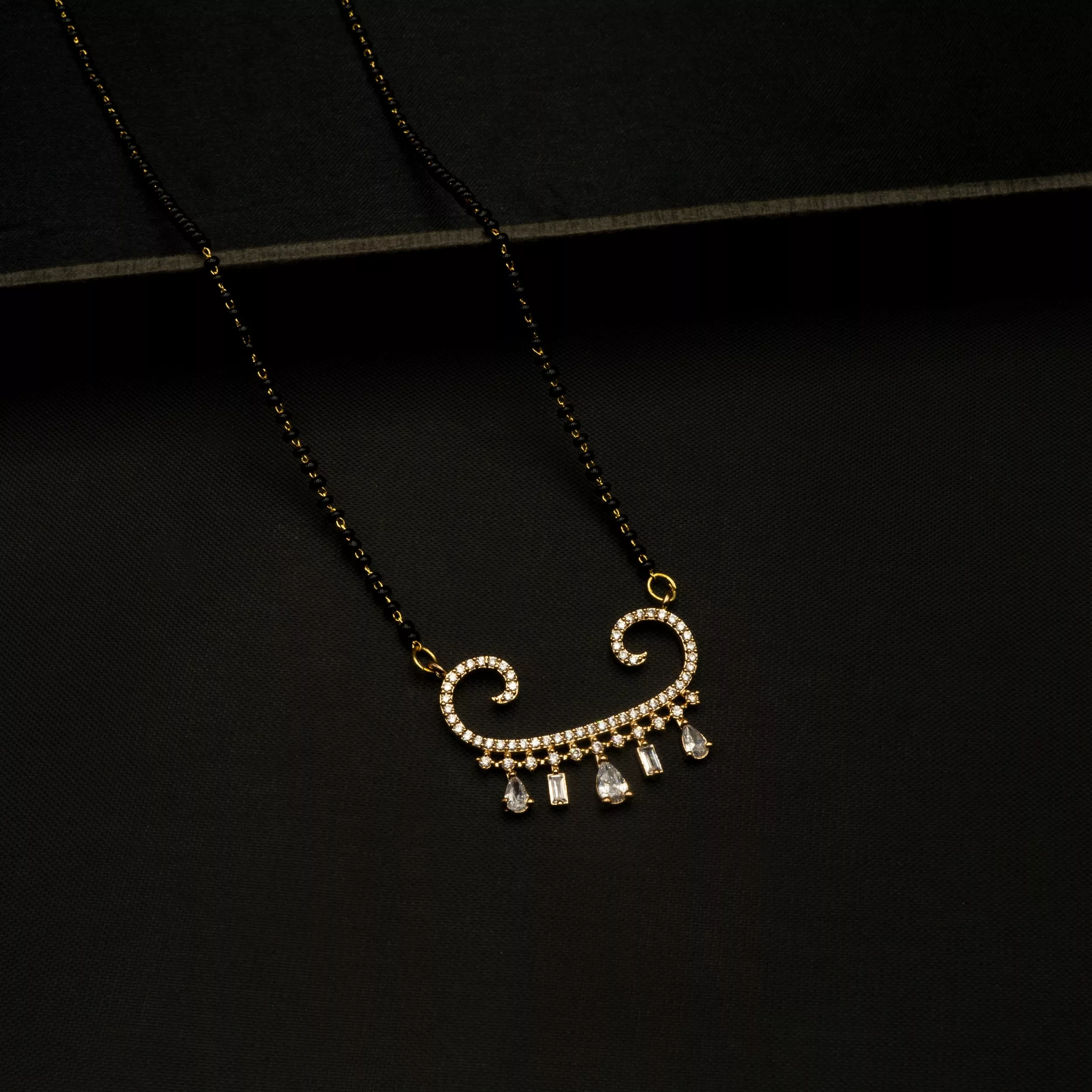 Tags: American Diamond, Black Beads, Brass, Cubic Zirconia, Gold Plated, Golden, Mangalsutra