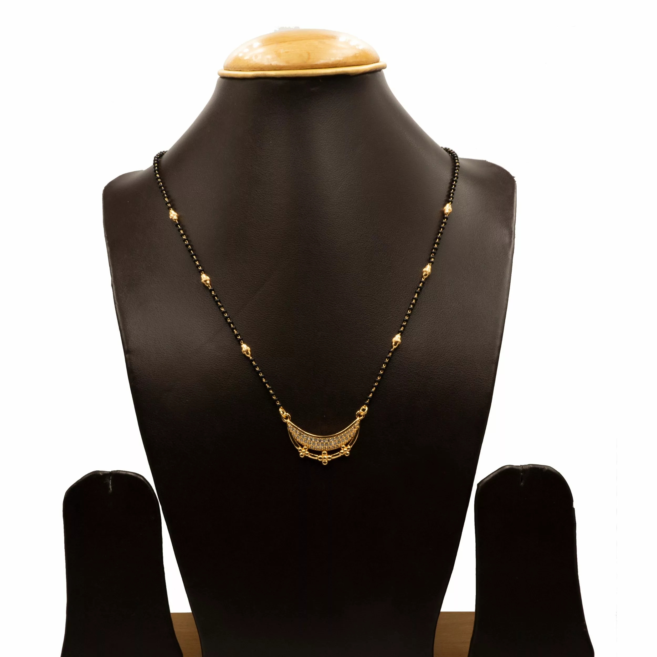 Tags: American Diamond, Black, Black Beads, Brass, Cubic Zirconia, Gold Plated, Golden, Mangalsutra