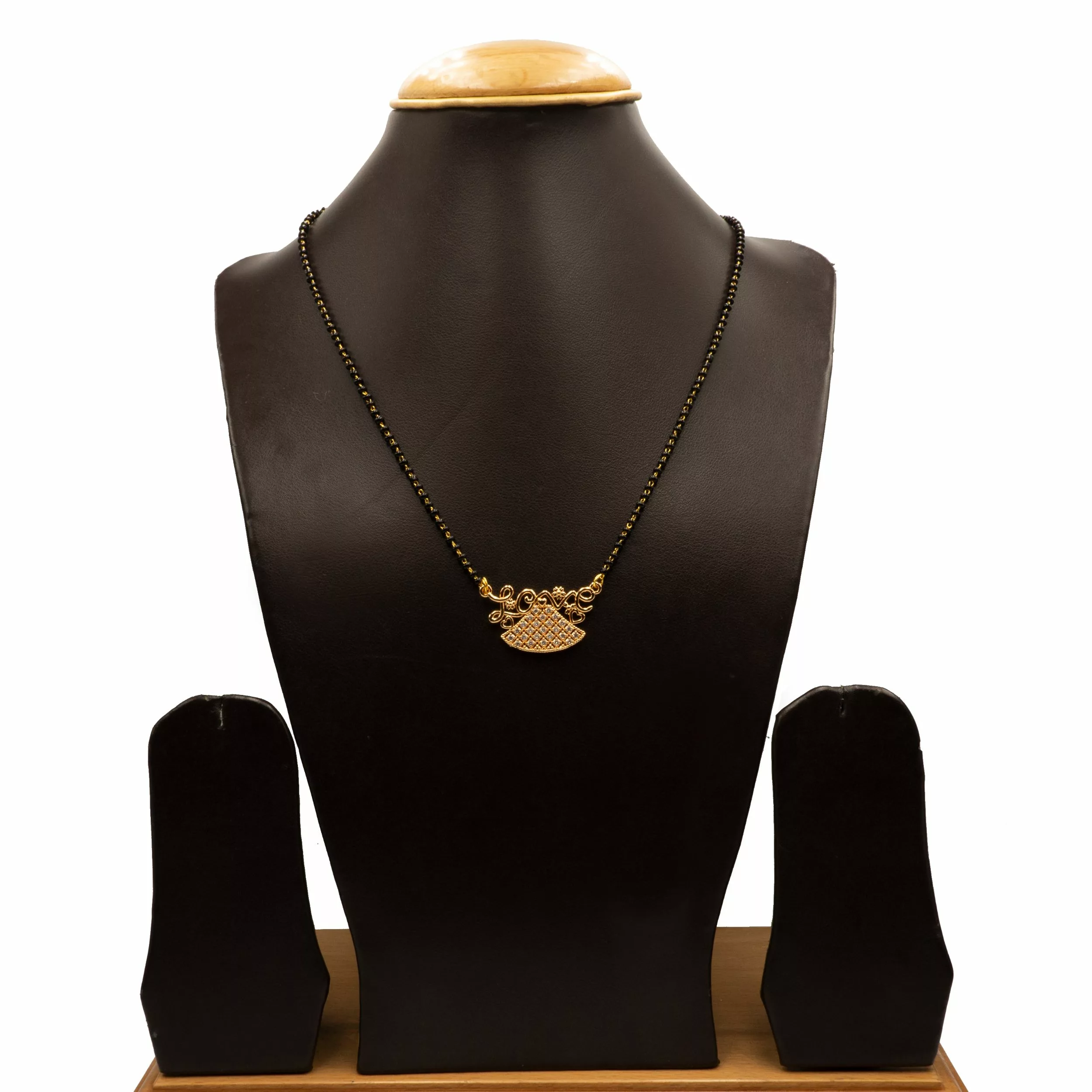 Tags: American Diamond, Black, Black Beads, Brass, Cubic Zirconia, Gold Plated, Golden, Love, Mangalsutra