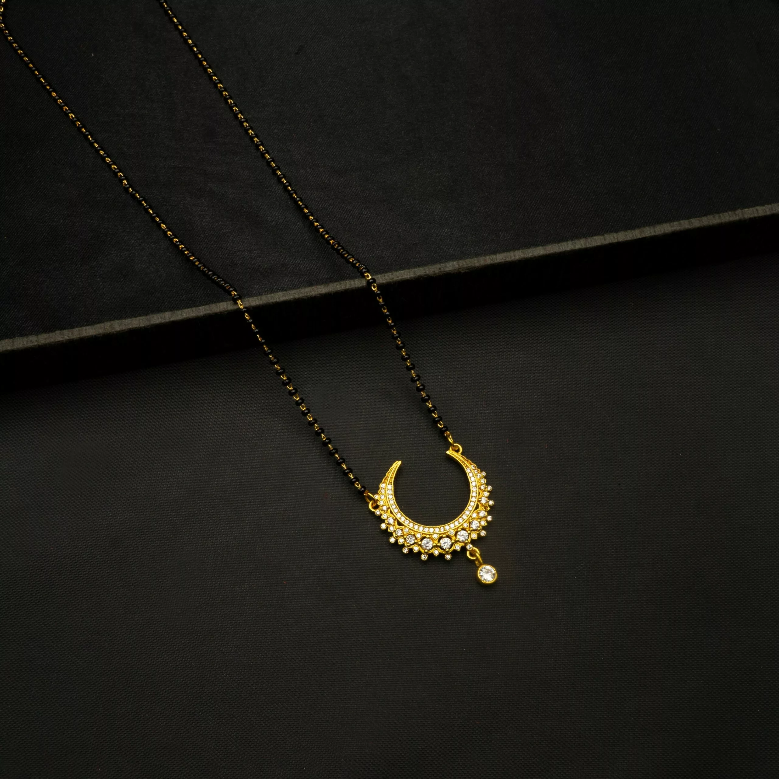 Tags: American Diamond, Black Beads, Brass, Cubic Zirconia, Gold Plated, Mangalsutra, Potey