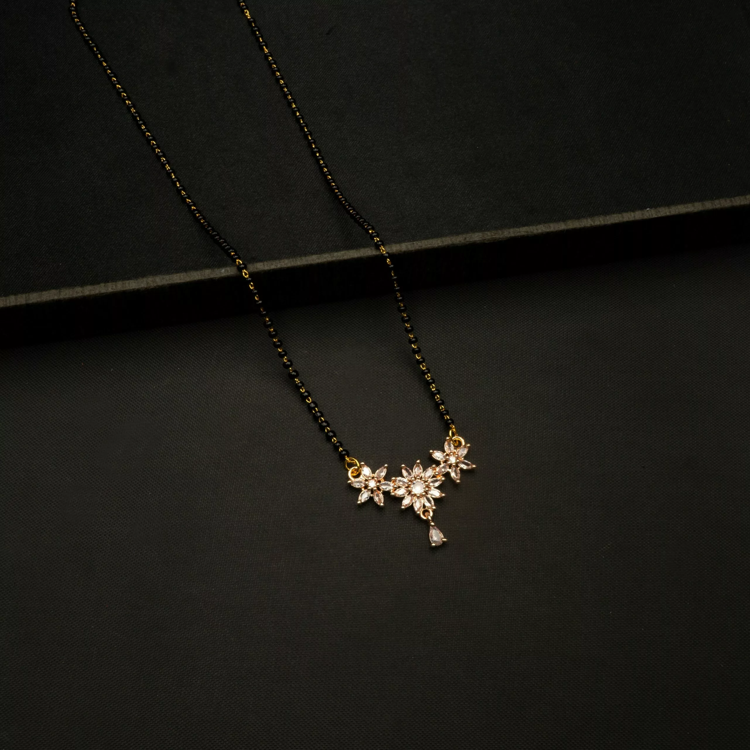 Tags: American Diamond, Black Beads, Brass, Cubic Zirconia, Gold Plated, Golden, Mangalsutra, Minimal